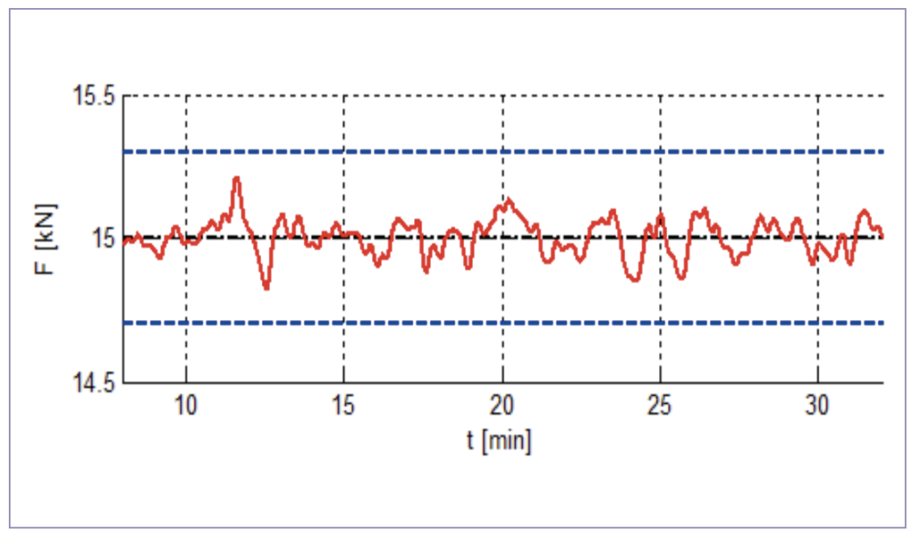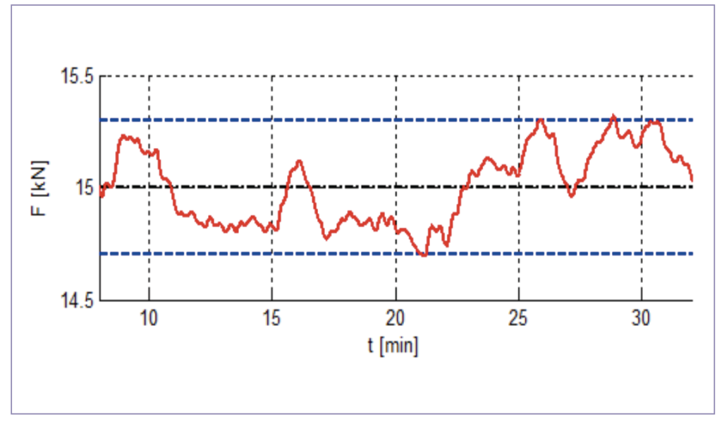 Figure 4: compression force during a production run with autoregulation set by machine learning.