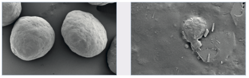 Pellets, which passed through a fluid bed coating process experienced hardly any mechanical stress. In addition, to the cushioning effect provided by the processing air, the excellent accessibility of the whole product’s surface area allowed perfect drying.