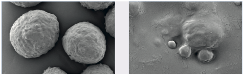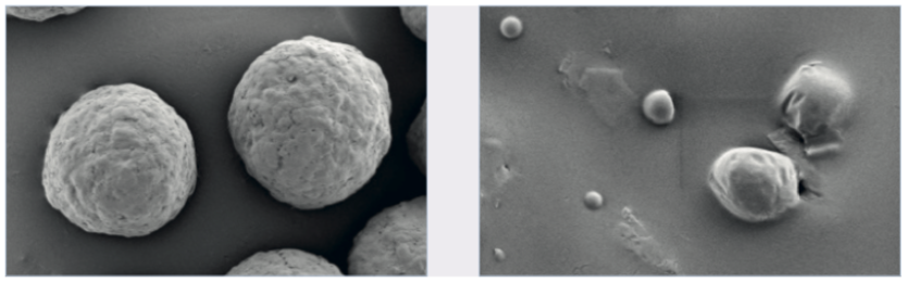 This produces coated substrates, with smooth surfaces (Figure 1), already delivering functionality at moderate coating levels (Figure 4). The mechanical impact on the substrate was higher in both drum coaters leading to the surfaces appearing slightly rougher (Figure 2, Figure 3). Functionality was achieved at similar coating levels in both coaters.