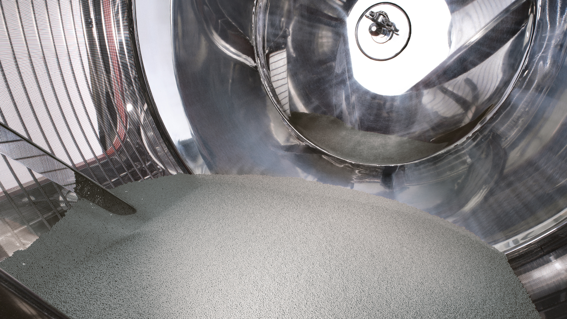 The spray position can be adjusted in the upper part of the process area (wet minitablets will then dry while cascading). Movement of the cores is visible, meaning any deviations from standard behaviour can be seen immediately.