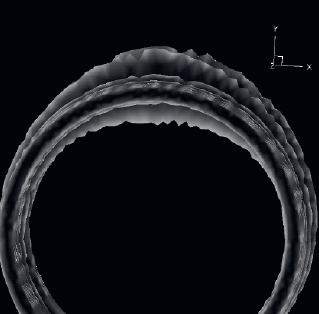 Figure 4: Maximum ice growth on coil1 (3.2 cm) and reduces to a minimum (4 mm) on the coils at the far end.