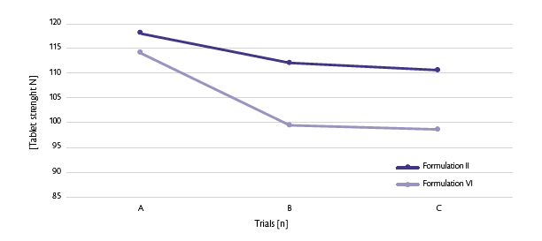 To confirm the hypothesis, tabletability at the turret speed studied was investigated (Figure 4).
