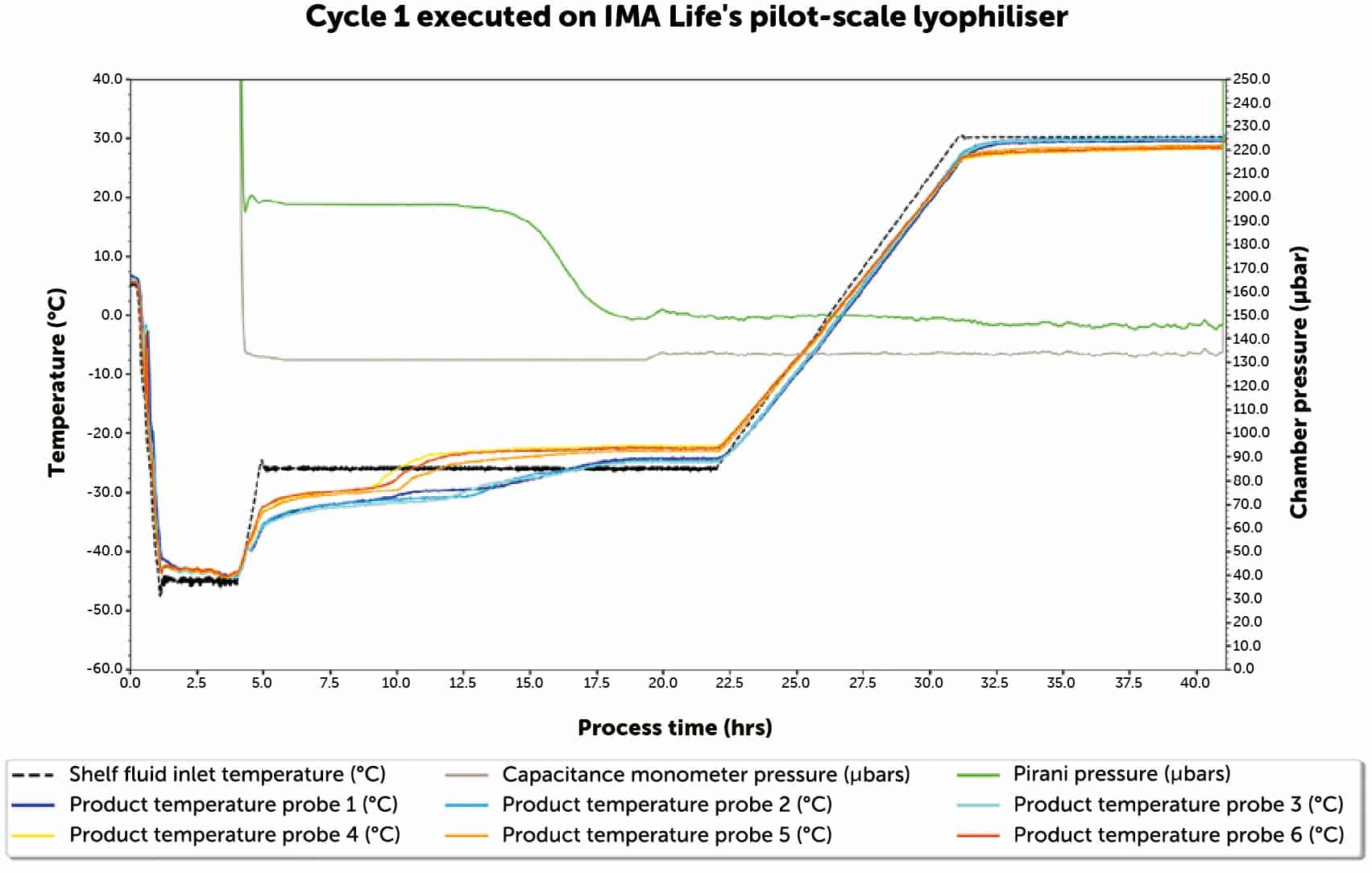 Performed several cycles in IMA’s pilot-scale lyophiliser, Lyofast 3 (2.3 m2) using the customer’s cycle parameters developed at lab scale