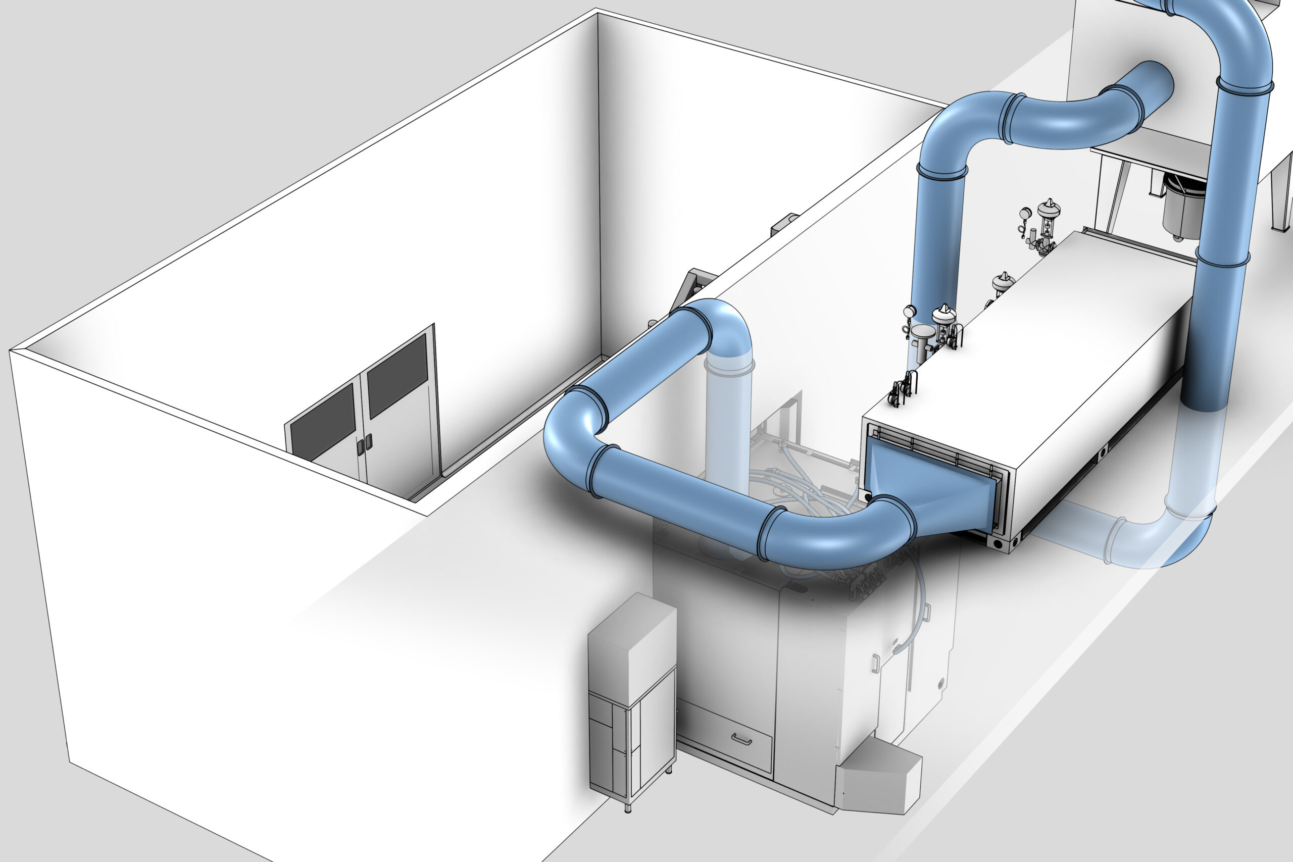 The machine is designed for through-the-wall installations: as an option, the machine can also be supplied with a second door for pass-through installation to separate the clean area from the unclean area.