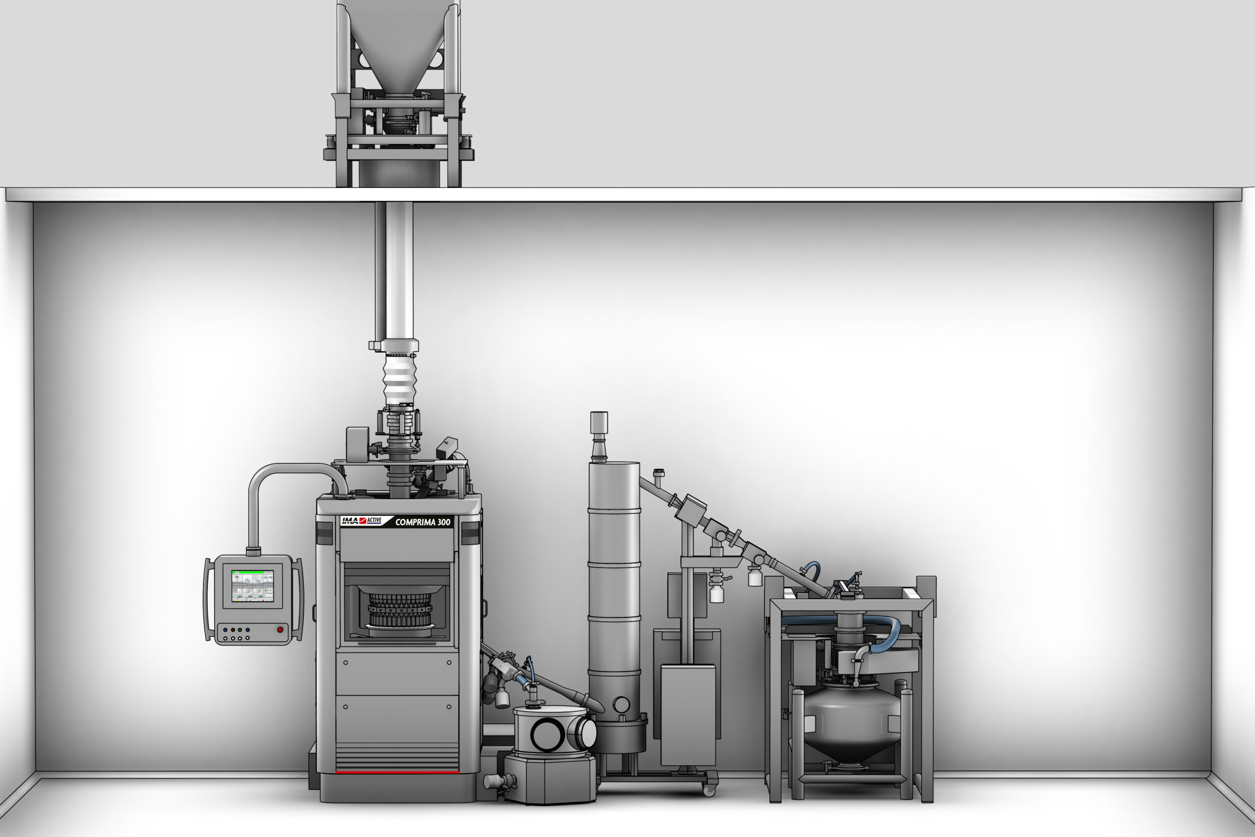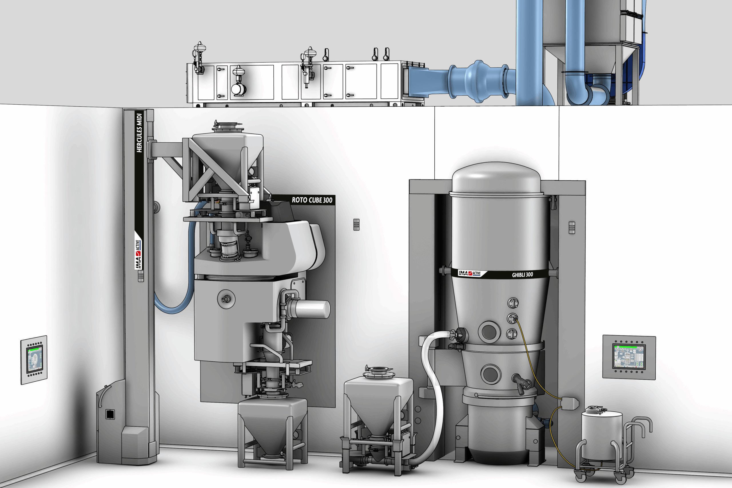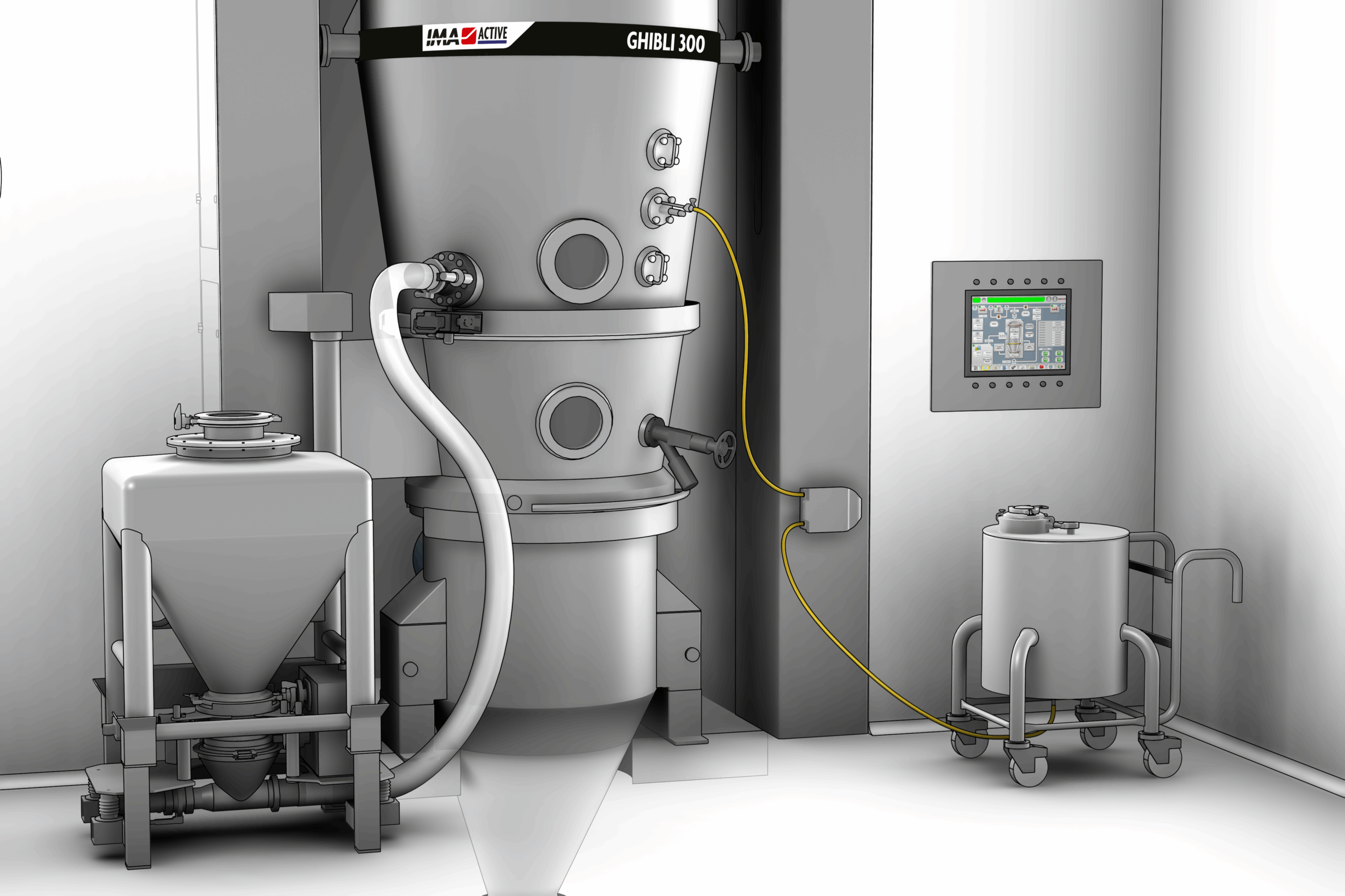 Ancillary equipment like mills, containment valves, lifting columns, pneumatic transfer systems become essential in case of contained production. They can be integrated in the granulation machines to facilitate the automatic operations and ensure the proper containment level.