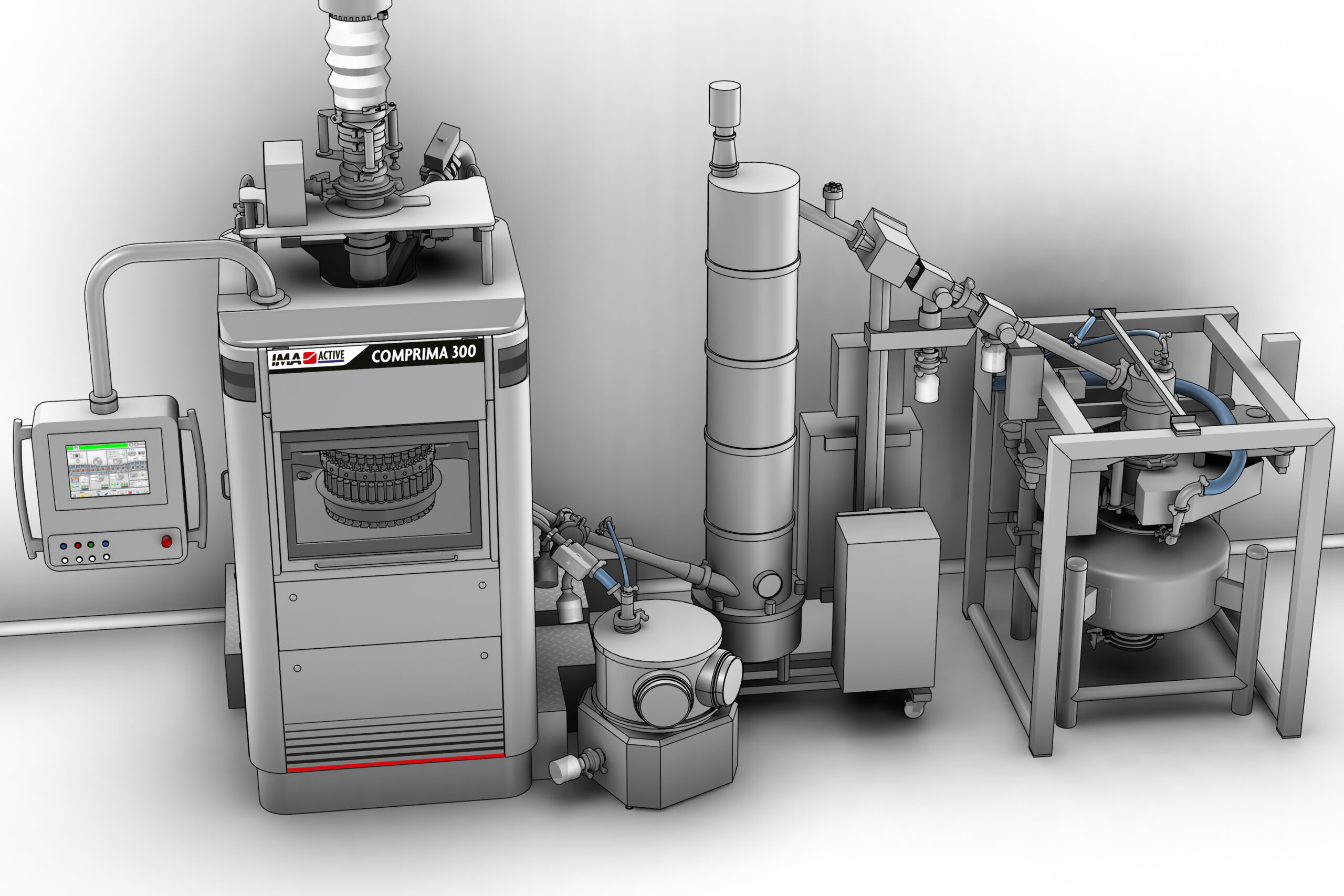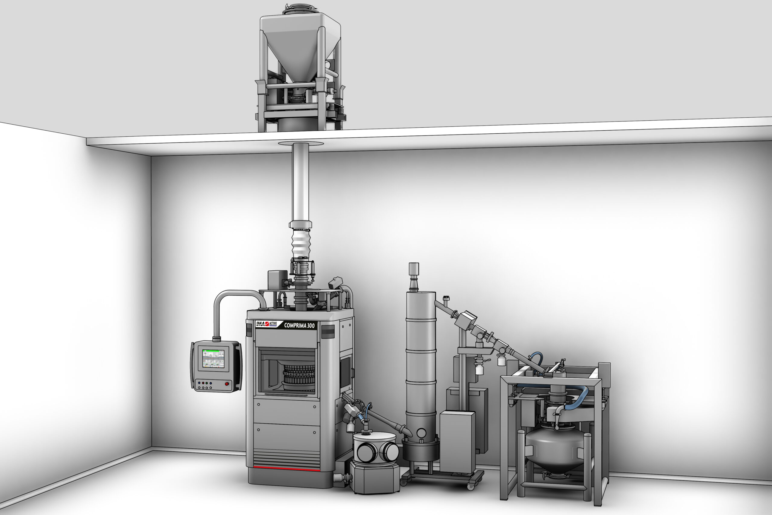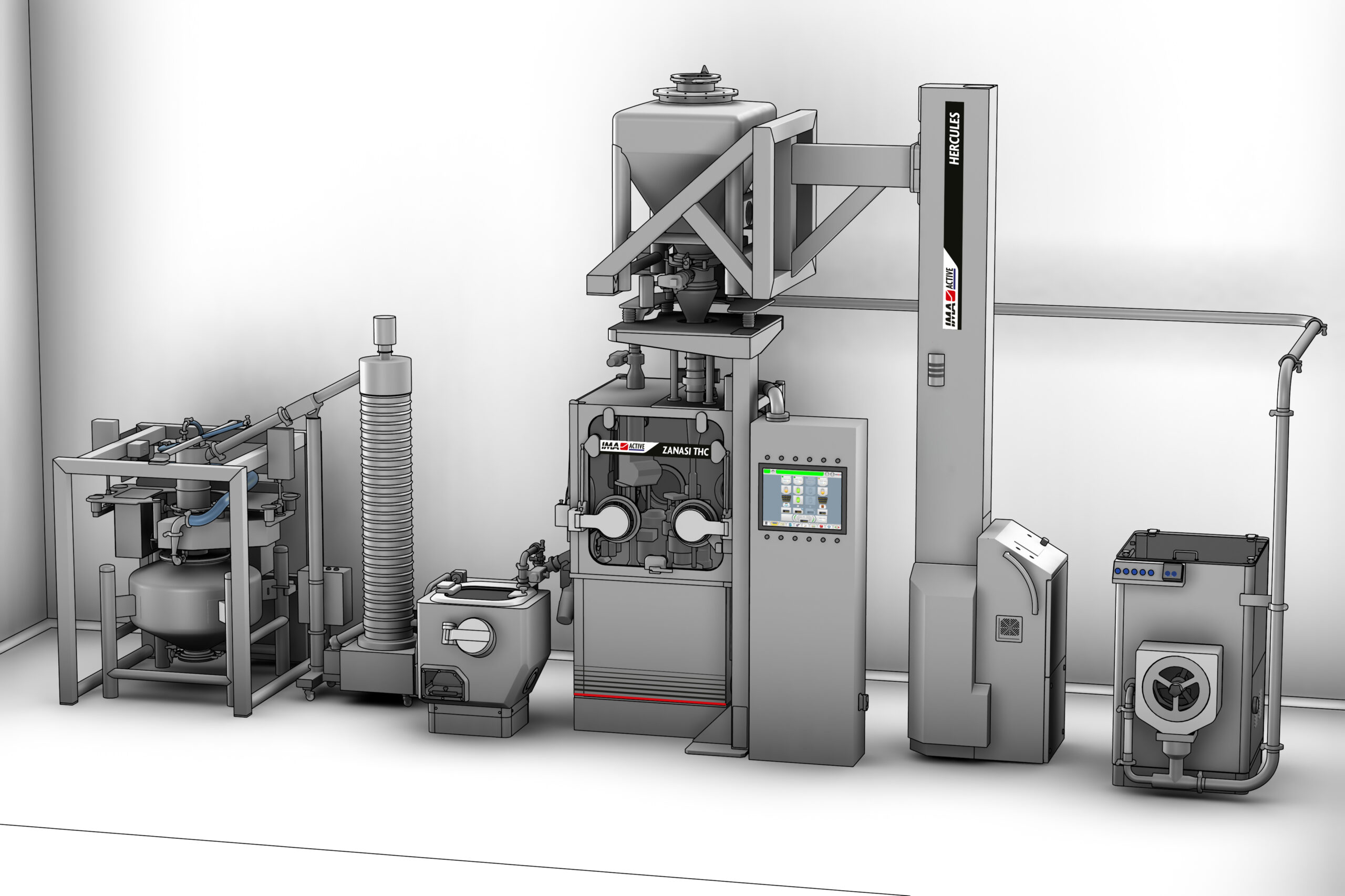 Ancillary equipment like mills, containment valves, lifting columns, pneumatic transfer systems become essential in case of contained production. They can be integrated in the granulation machines to facilitate the automatic operations and ensure the proper containment level.