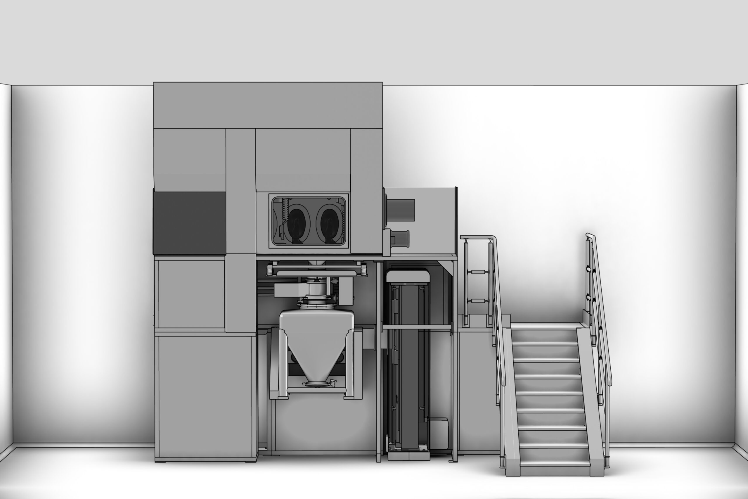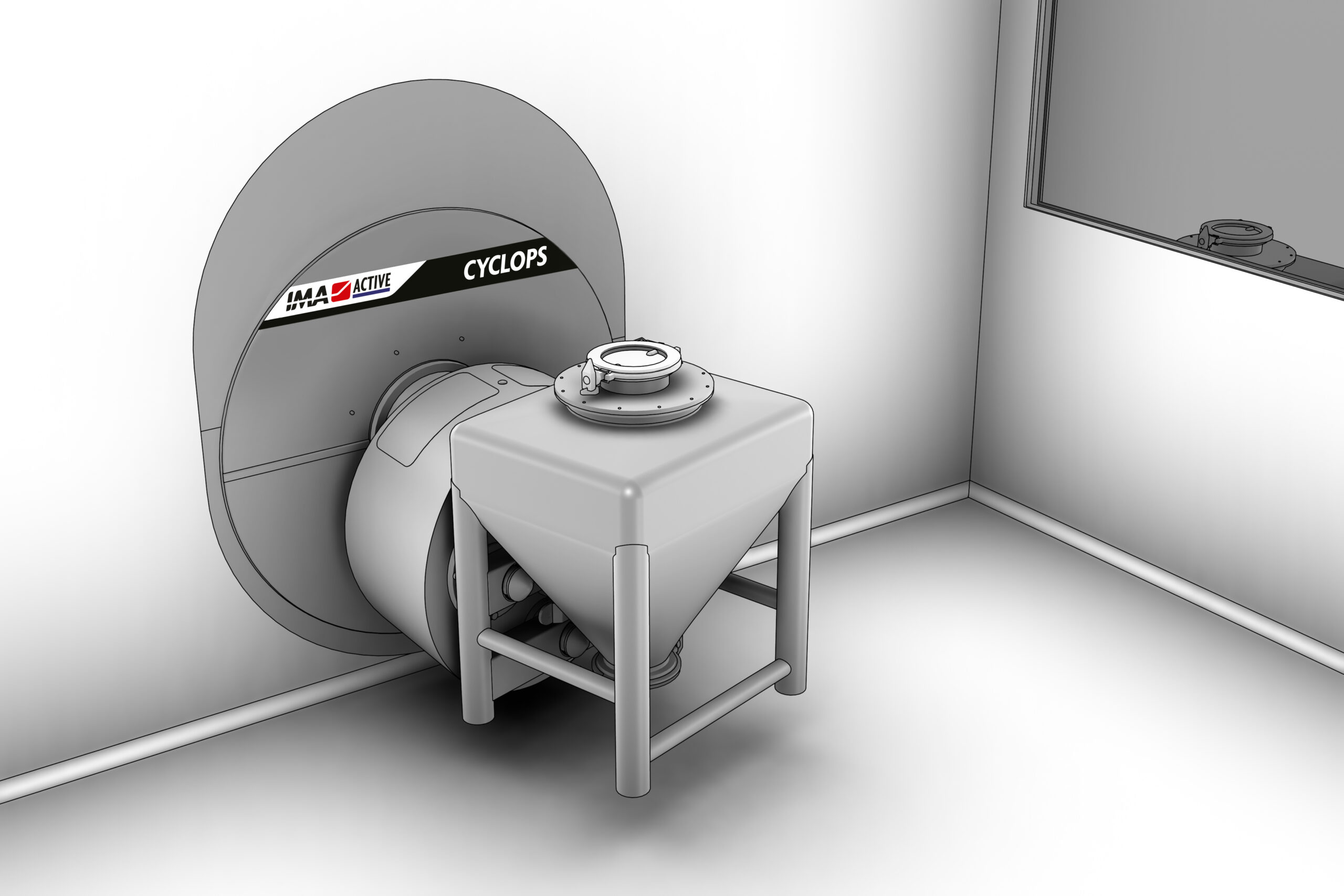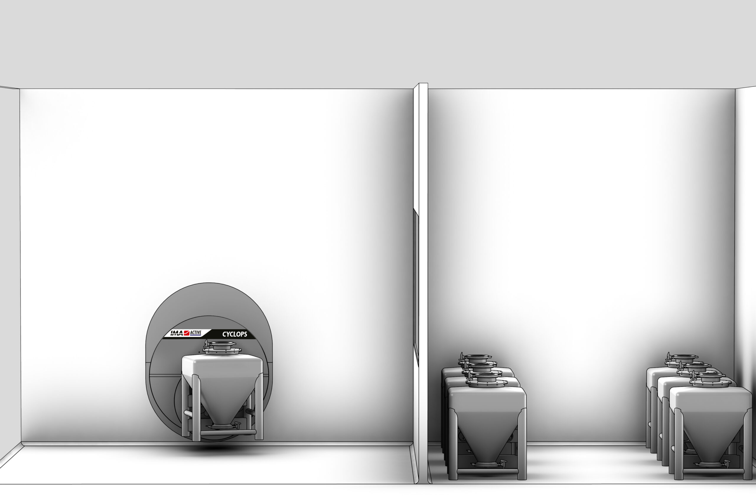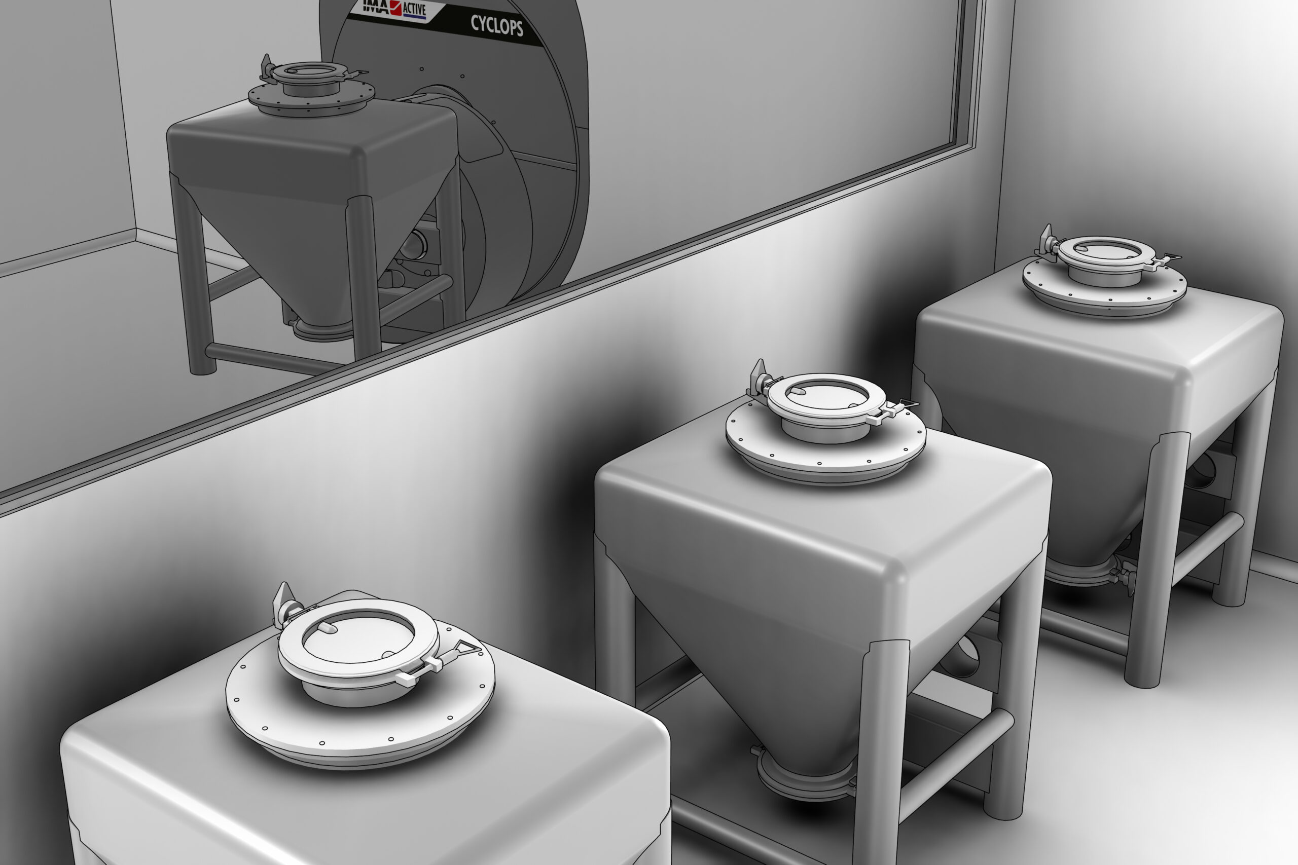 Blending is carried out on CYCLOPS bin tumbler so that no product feeding and discharge operations are required inside the blending area.