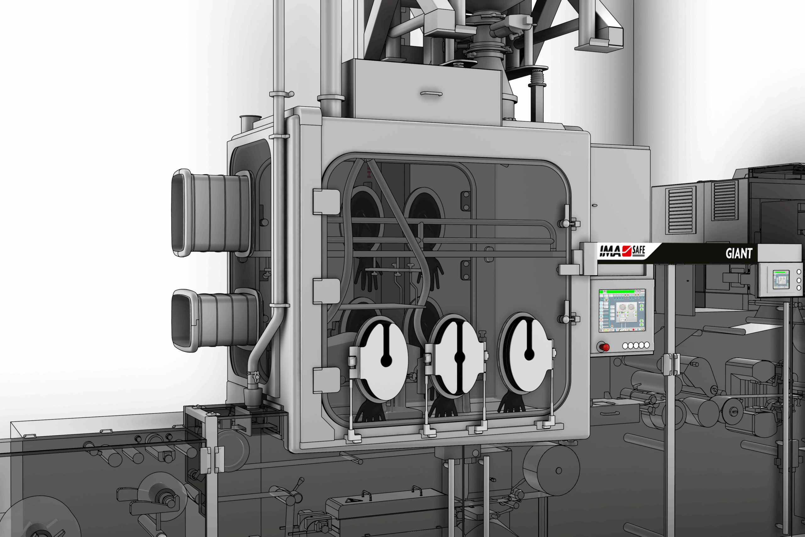 Isolators can be supplied to achieve containment for the operations that normally foresee a close contact of the operator with HAPI.