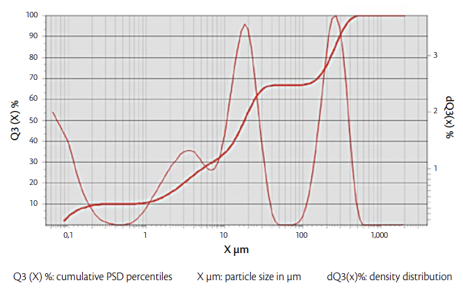 Particle Size Distribution (PSD) | µm | D10= 0.7 D50= 17.8 D90=295 (*Figure 2) |