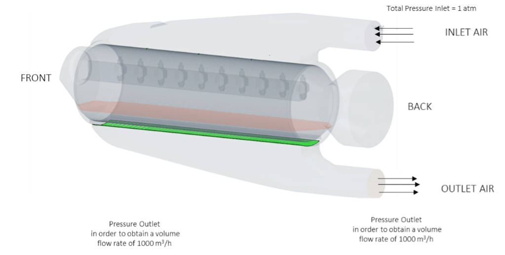 In Figure 4 it is possible to show the result of the air distribution on the grid of the 2 conveyors simulated on STAR CCM+.