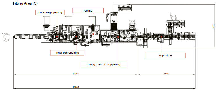 Figure 17: layout of robotized NTT with high-speed PFS fill-finish line.