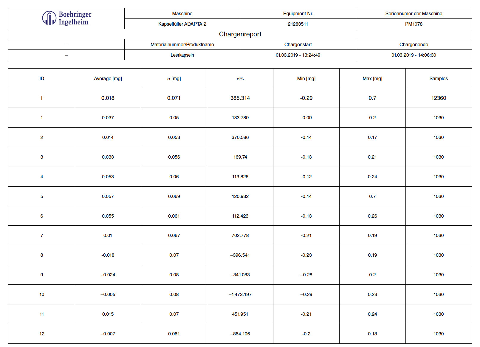 After several sessions of trials, machine parts optimization, deep analysis of the measuring system and its synchronization with capsule filling process, Adapta with 100% gravimetric net weight control was able to perfectly match process capability