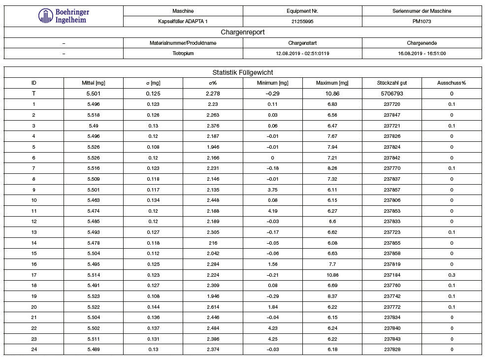 Table 2: Spiriva®, achieved fill weight on Adapta with 100% gravimetric net weight control.