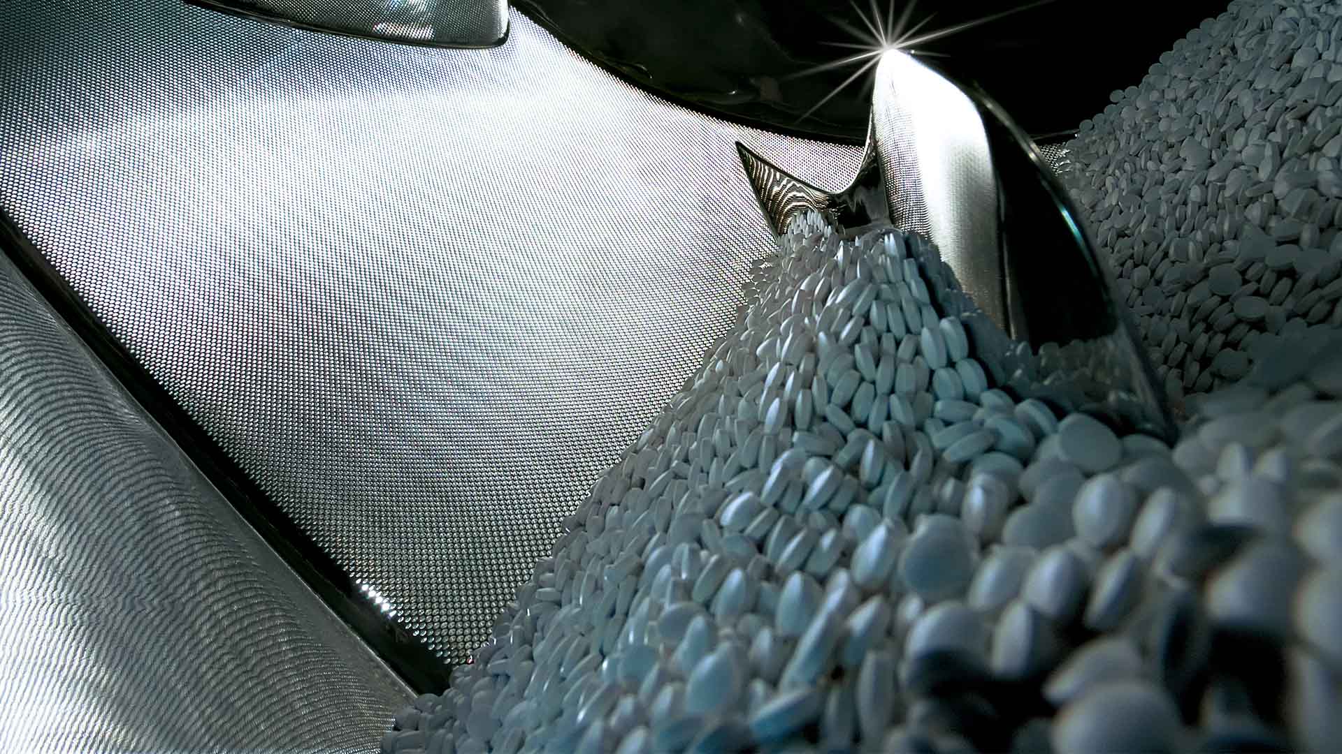 In contrast to other types of equipment, the positioning of the fin baffles on the perforated wall of the Perfima 200 allows an effective mixing even of small batches. Therefore, batch sizes from 35 to 136 kg can be coated in one coater without interchanging the drum (Figure 2). Given the same drum size and a constant peripheral speed it can be assumed that the tablet speed in the spray pattern is constant independent of the batch size.