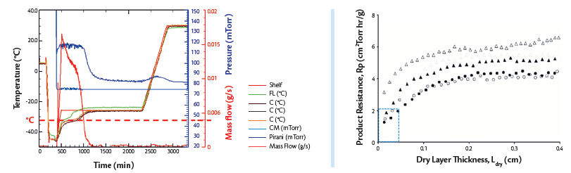 - The collapse temperature (Tc) for the formulation was accurately captured from Freeze Drying Microscope (FDM) experiments executed as part of the early QbD lyo development efforts.