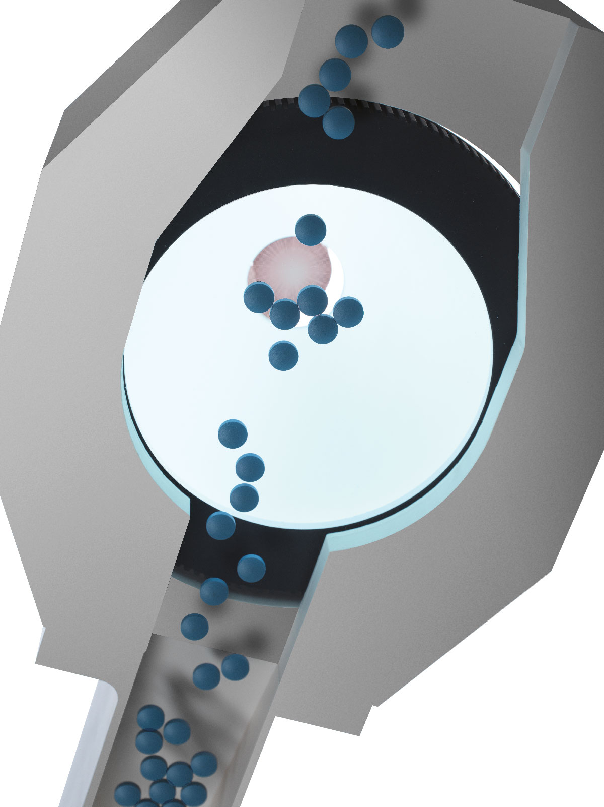 Croma has been designed to facilitate truly Continuous Manufacturing, moving the product through the entire coating process. The advantages for pharmaceutical industry customers are clear: optimised production, flexible process, efficiency, reduction in equipment size and lower costs. In particular, up to 4 modules can work in series or in parallel. The tablets pass through a rotating perforated drum supplied with a flow of hot air, and their exposed surface is coated using spray guns. Market standards require each individual tablet to be uniform, both in terms of its outer coating and in relation to other tablets in the same batch.