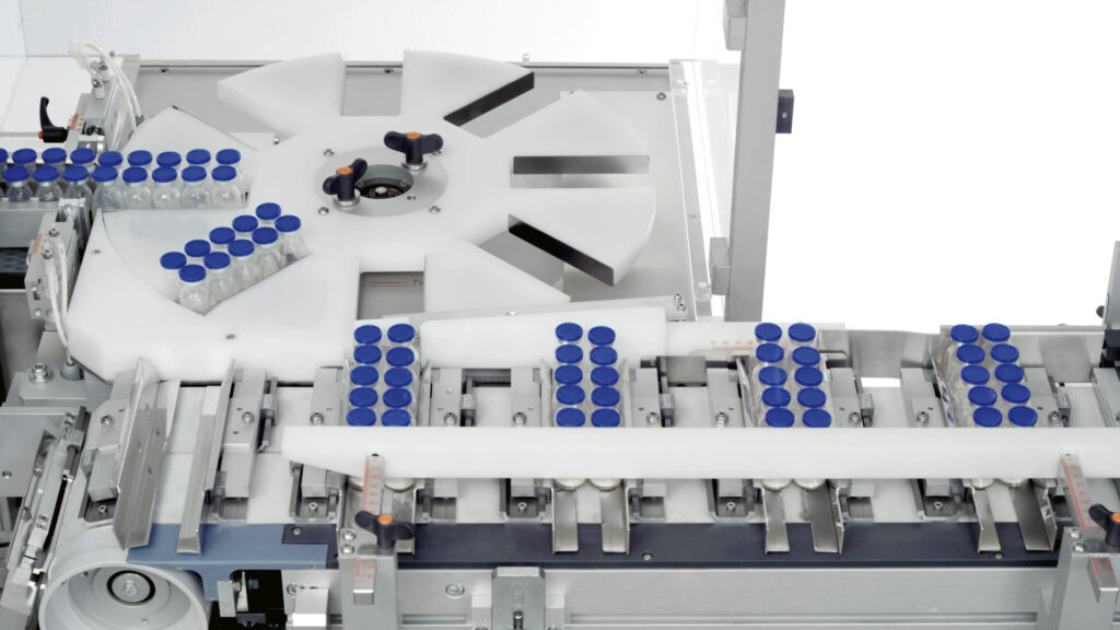 Both machines and feeding units are extremely flexible, enabling several types of products and packs to be processed. They can handle a wide range of very delicate and fragile products such as ampoules, vials, syringes and many others, thanks to the use of robotic systems applied to the most critical areas like product feeding and connection from the upstream machine to the cartoner.