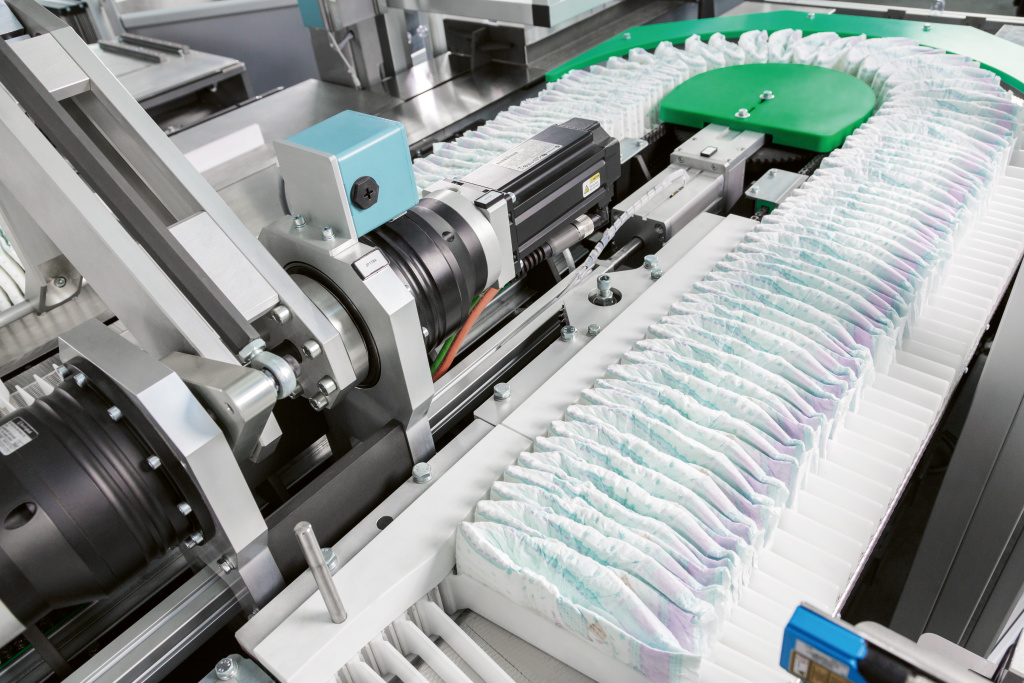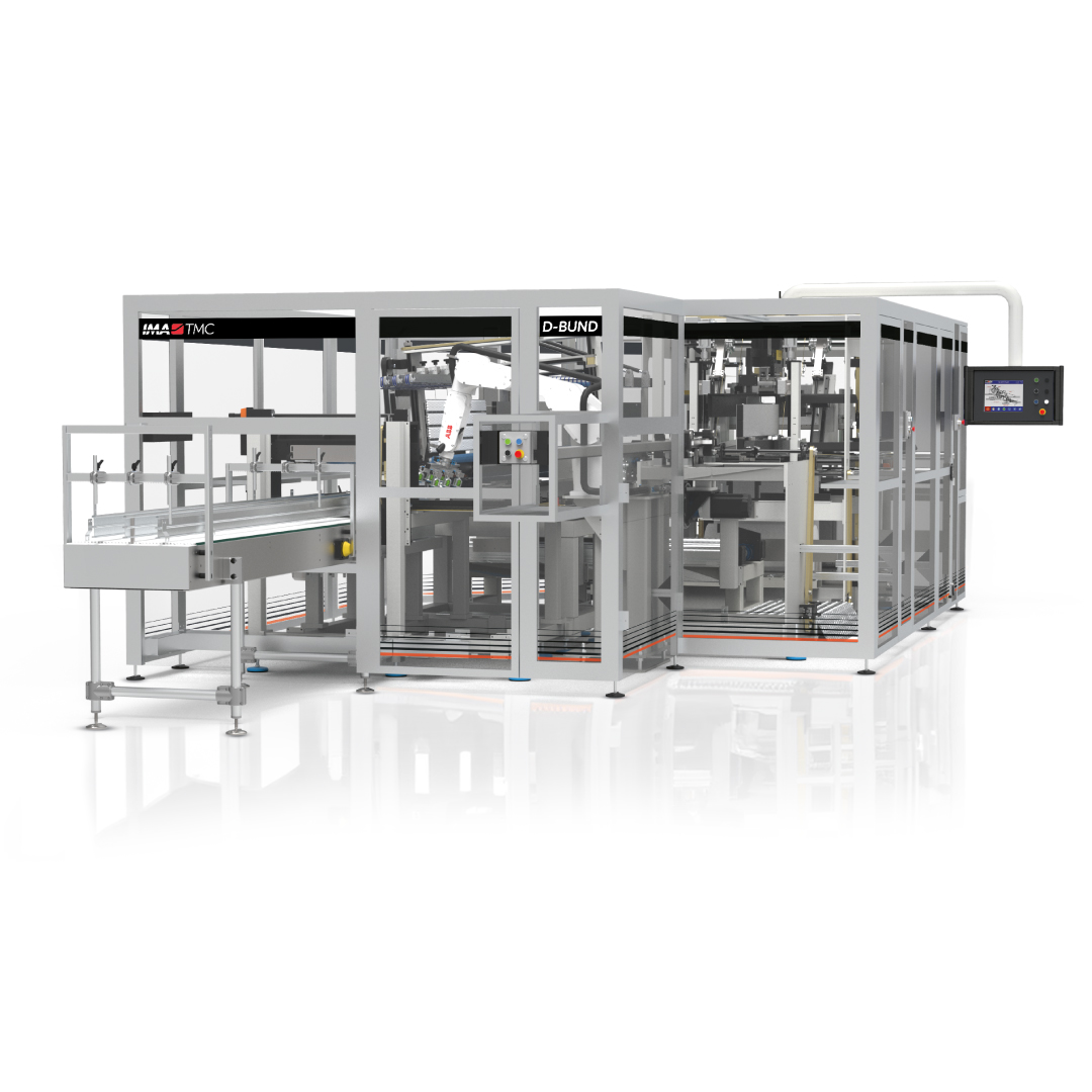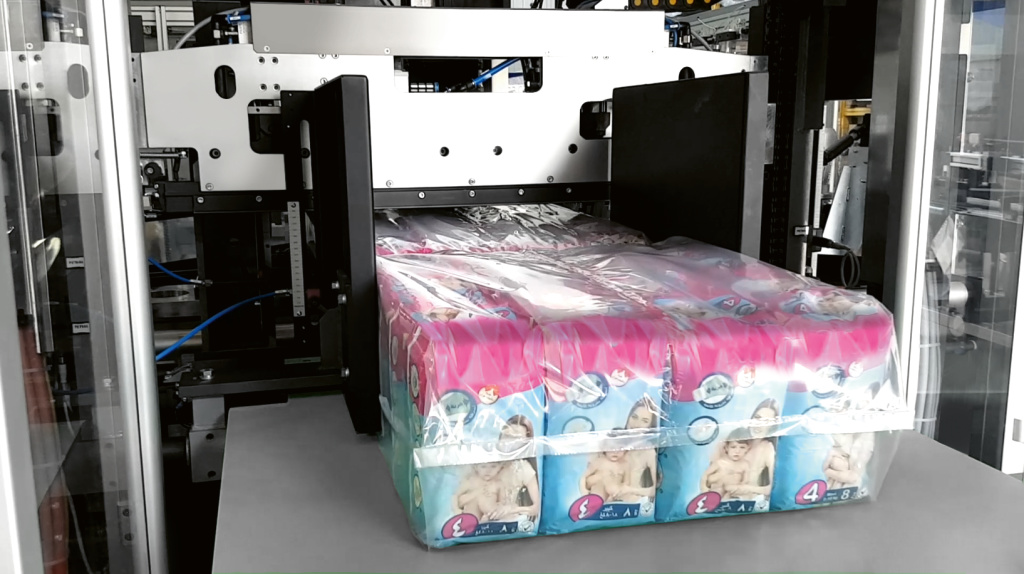 Once products are packed, they can be bundled with D-BUND: a completely automatic bundler that includes all features to transfer, collate and overwrap diaper bags in neat, tight, completely sealed bundles.