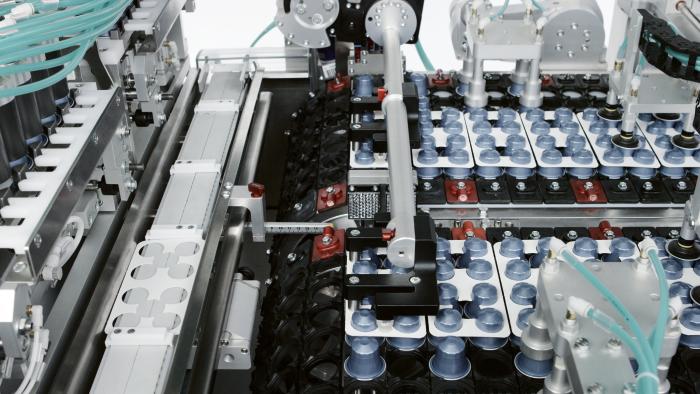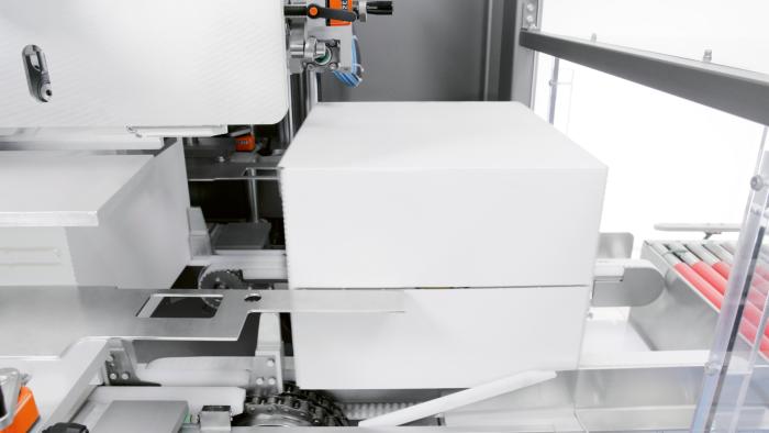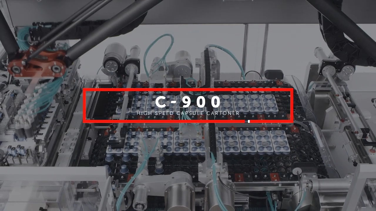The process continues with the C-900 high-speed cartoner, perfectly integrated as a turnkey solution. Capable of feeding up to 900 capsules per minute and packing up to 90 cartons per minute, it offers quick size changeovers and compatibility with any capsule type and carton style.
