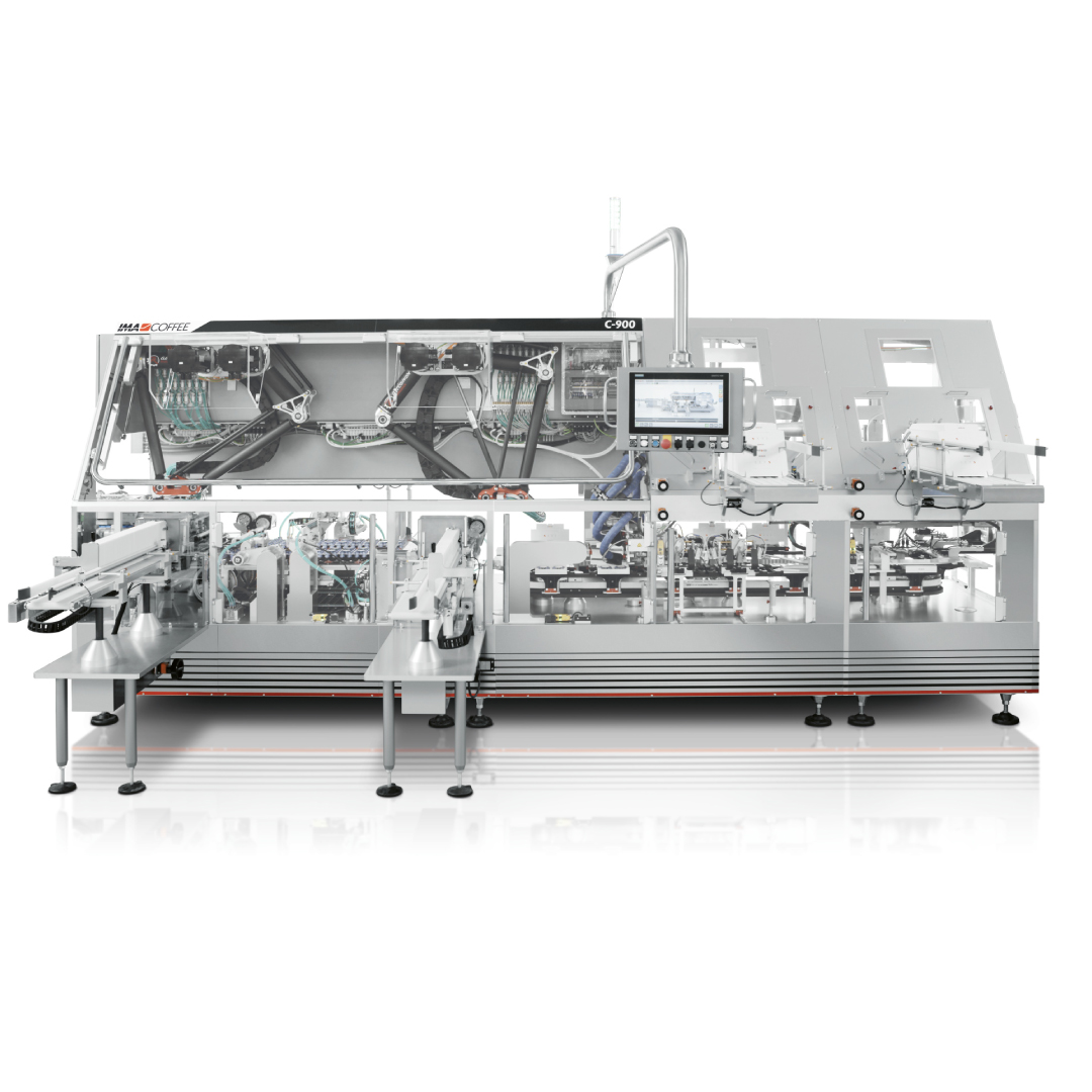Complete coffee capsule packaging line, combining high performing technologies for packaging Nespresso compatible compostable capsule, up to the case packing.