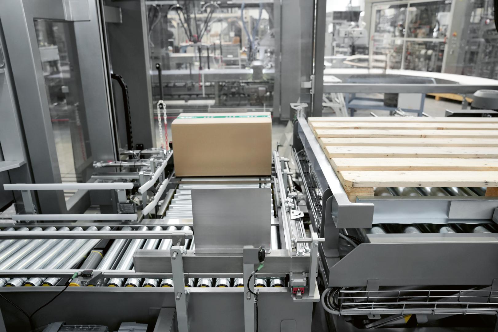 The AIO P is a compact, highly automated case packing-palletizing system that streamlines the aggregation process with integrated pack to bundle and bundle to case handling, supported by a continuous bundle refeeding system.
