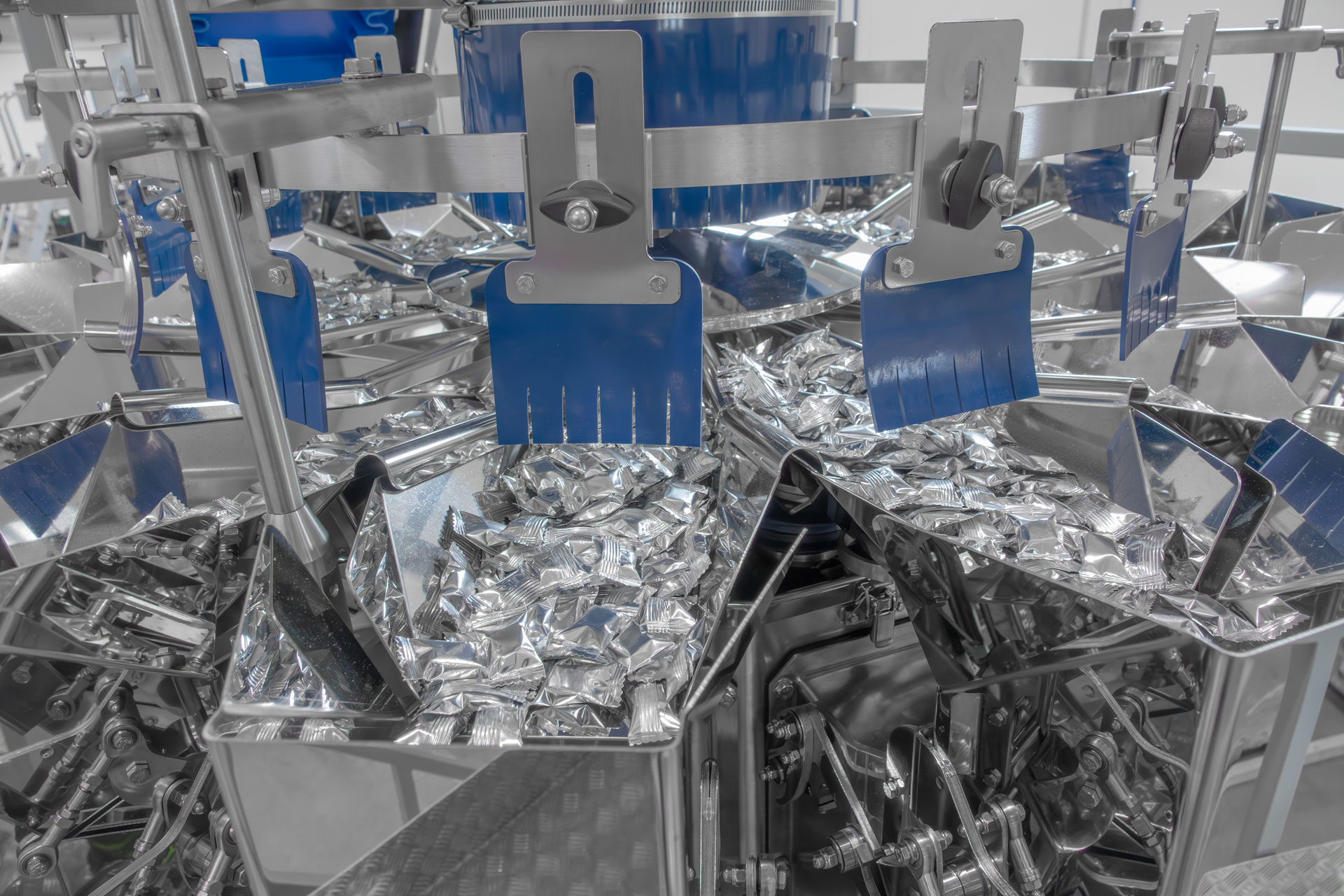 Packaging SolutionIMA line includes all stages of the packaging process: automated feeding from upstream lines, primary wrapping for single flow packs, multi-head weighing, and secondary vertical bagging for multi-packs in Quad Seal bags. From feeding to final packaging, everything is seamlessly integrated for maximum efficiency.