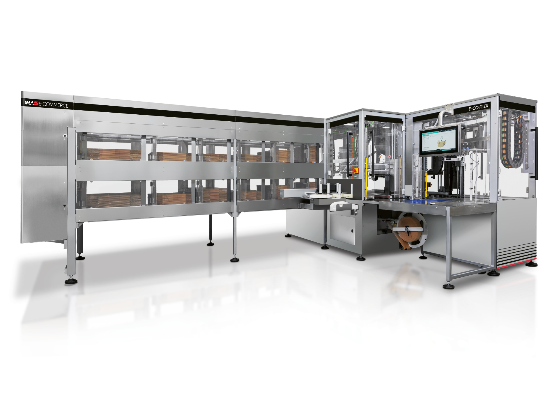 Thanks to its compact footprint, E-CO FLEX can be easily integrated into existing packing lines and warehouse layouts. By adapting its working speed to the operator, it ensures smooth, ergonomic and efficient packing station operations, improving productivity and consistency in e-commerce order fulfillment.