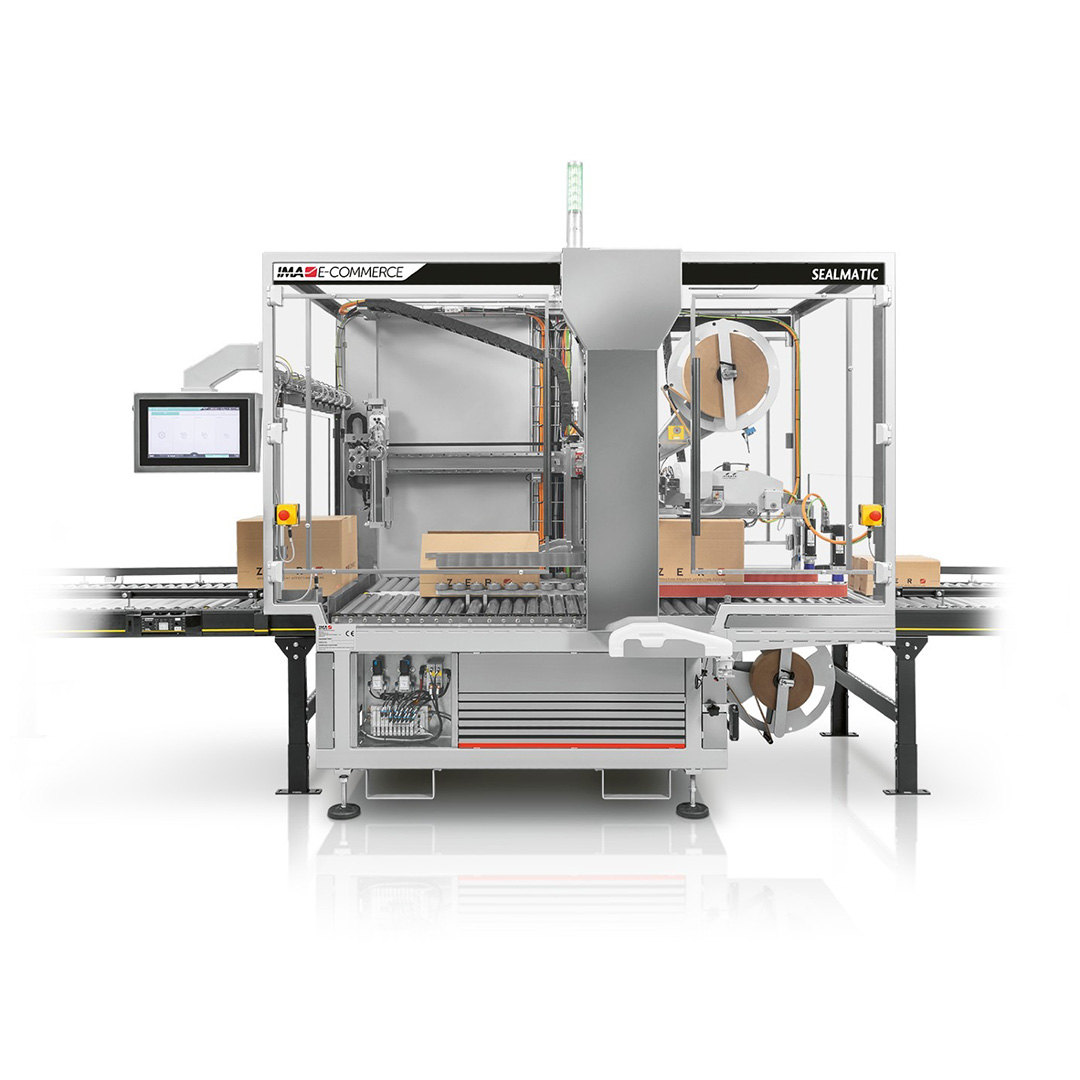 Elevate your packaging workflow with this versatile end-of-line solution tailored for dynamic e-commerce and fulfillment environments. At its core, IMA E-COMMERCE’s E-CO Flex XL Forming sets the stage with modularity, featuring modular magazine (up to 16 different box footprints) that automatically selects, forms, and bottom-tapes the optimal box using sustainable water-activated tape. For seamless product sealing, E-CO Flex SealMatic delivers 100% automated top-taping of FEFCO 201 and SIOC cases with water-activated tape, ensuring a human-free, efficient seal that adapts to random case dimensions. On the labeling side, the line features ZERO Volt, IMA Labeling’s linerless innovation, reducing labeling waste and improving roll efficiency: a powerful nod to greener, faster operations.