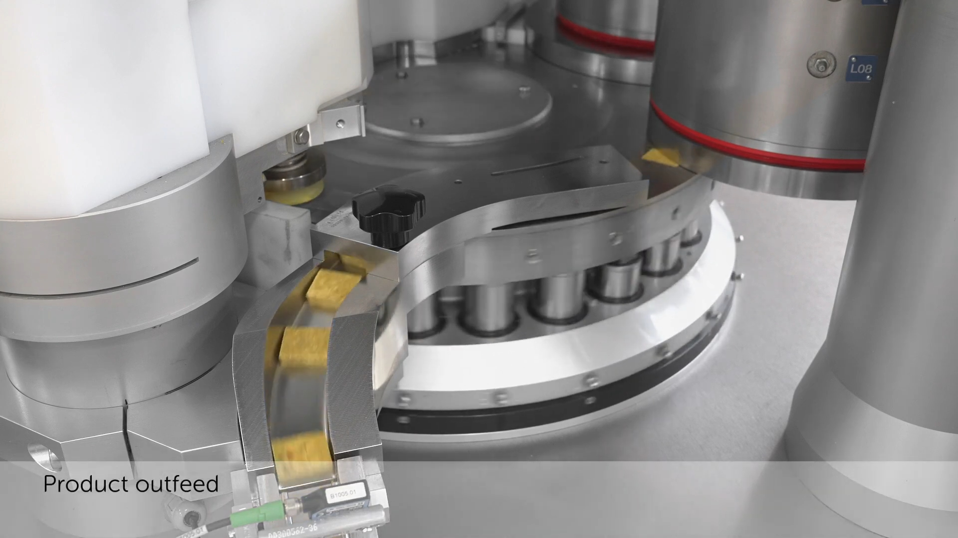 The journey begins with the pressing of powder in the PDP24 single-punch tablet press. This machine is the true core of the line: equipped with 24 punches, it can form up to 4,000 cubes per minute, ensuring uniform quality even with complex recipes or powders with low flowability.