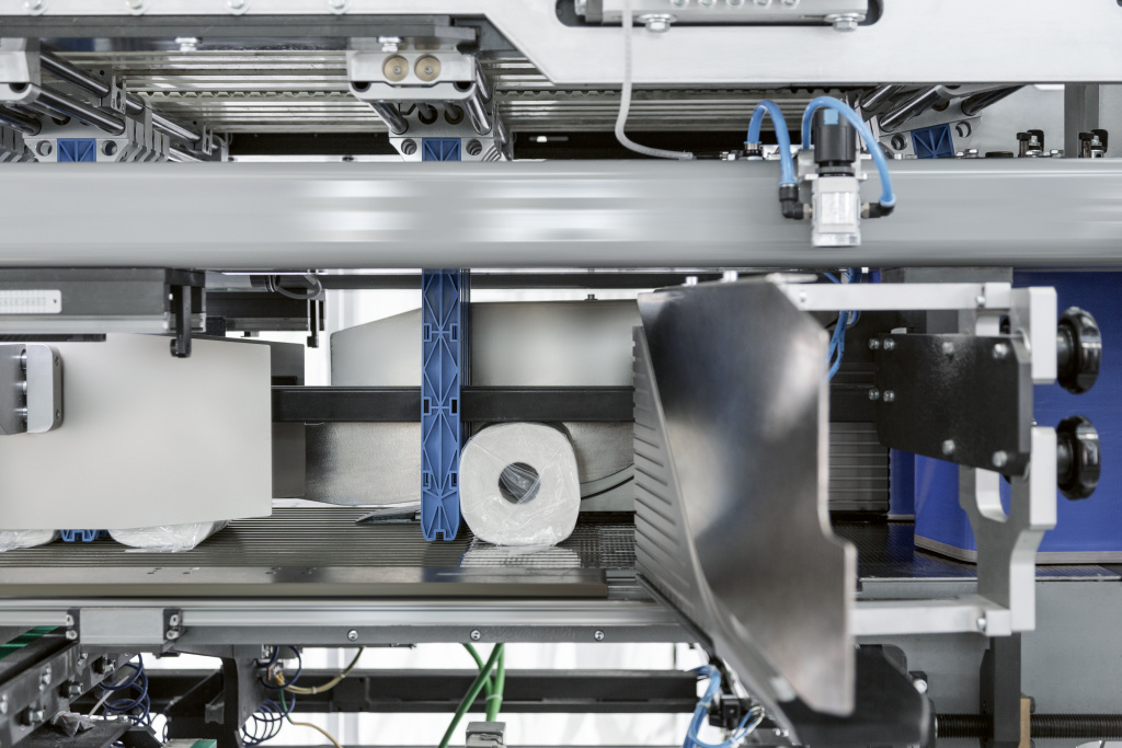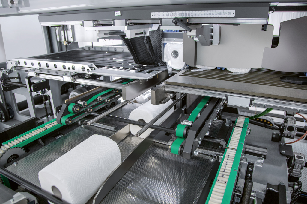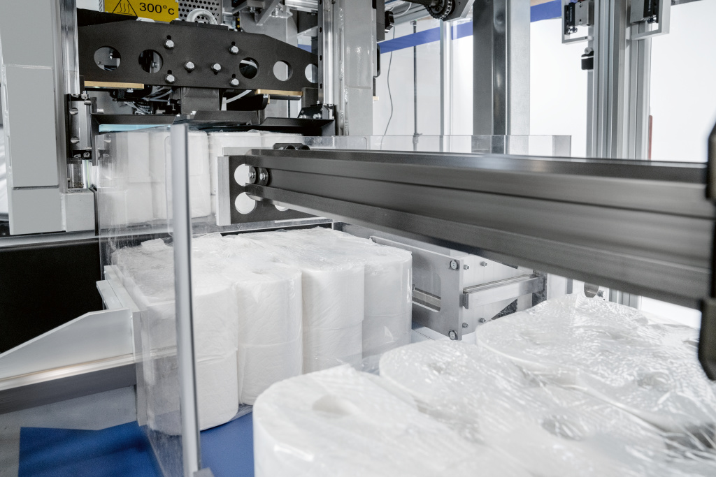 At the heart of the primary packaging stage is the WRAP250, a high-speed wrapper engineered for single to multi-roll tissue products. This machine surpasses the market average by 25% in pack-per-minute output, enabling the production of up to 1,000 rolls per minute on a single line. This eliminates bottlenecks at the rewinder stage and ensures continuous, high-volume performance.