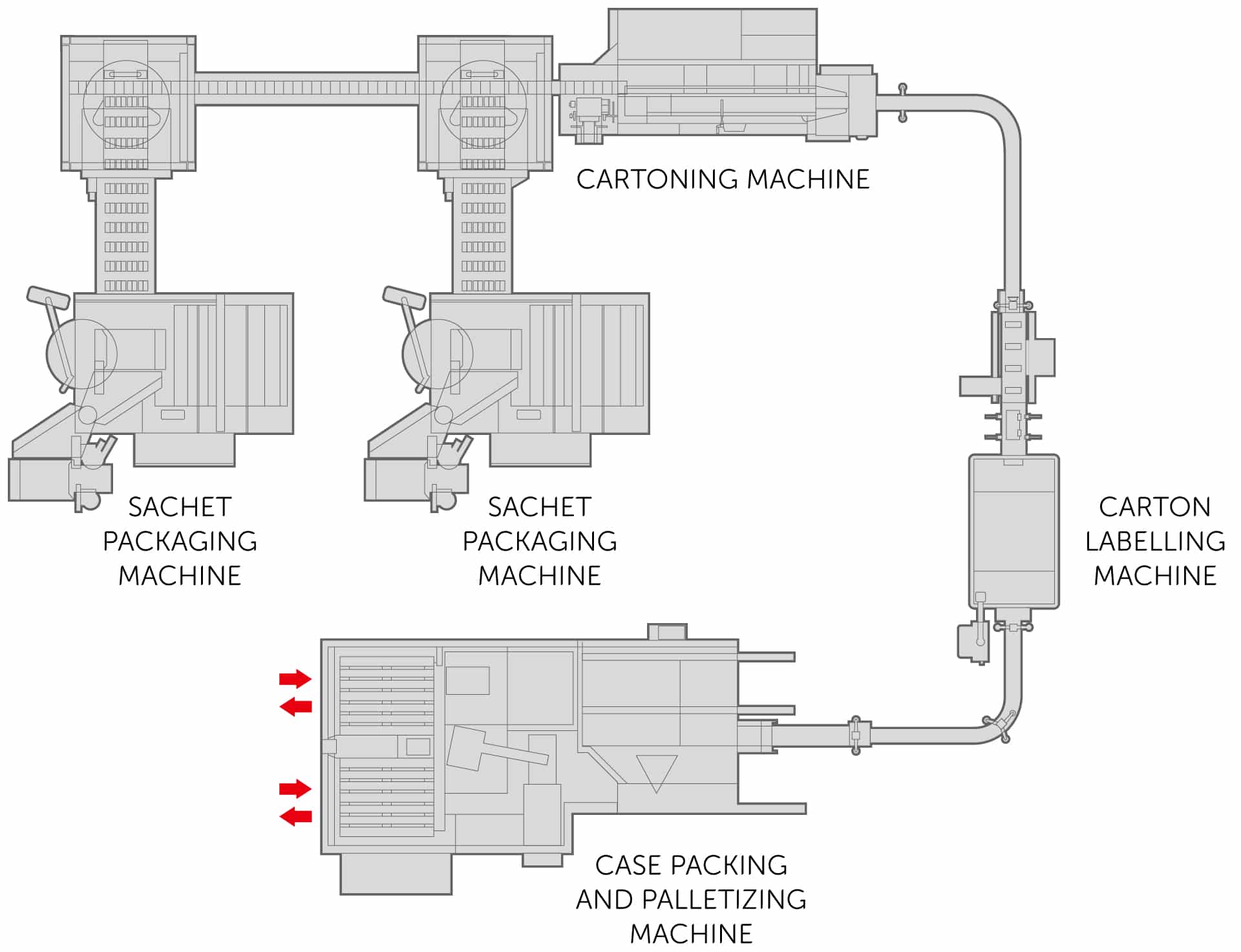 So versatile that it handles solid, dense, semi-dense and liquid products, our intermittent-motion machines run at up to 700 sachets/min. To maximise their versatility, they enable efficient manual changeover with great access for operators. Top versatility for cartoning includes continuous or intermittent motion, from low-medium multipurpose equipment to high-speed solutions. Labelling can be integrated to cater for all needs, even with 3 labelling heads for tamper-evident and bollino stickers, printed on any printer type for track & trace purposes. The end-of-line operations feature case-packing with the fully automatic side-loading CPH2 and RP palletizing solutions that can be stand-alone or fully integrated, and are all an integral part of the line.