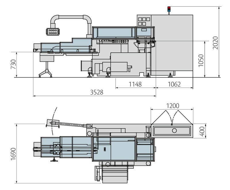 Machine can be supplied with right hand or left hand film feeding from product entrance.