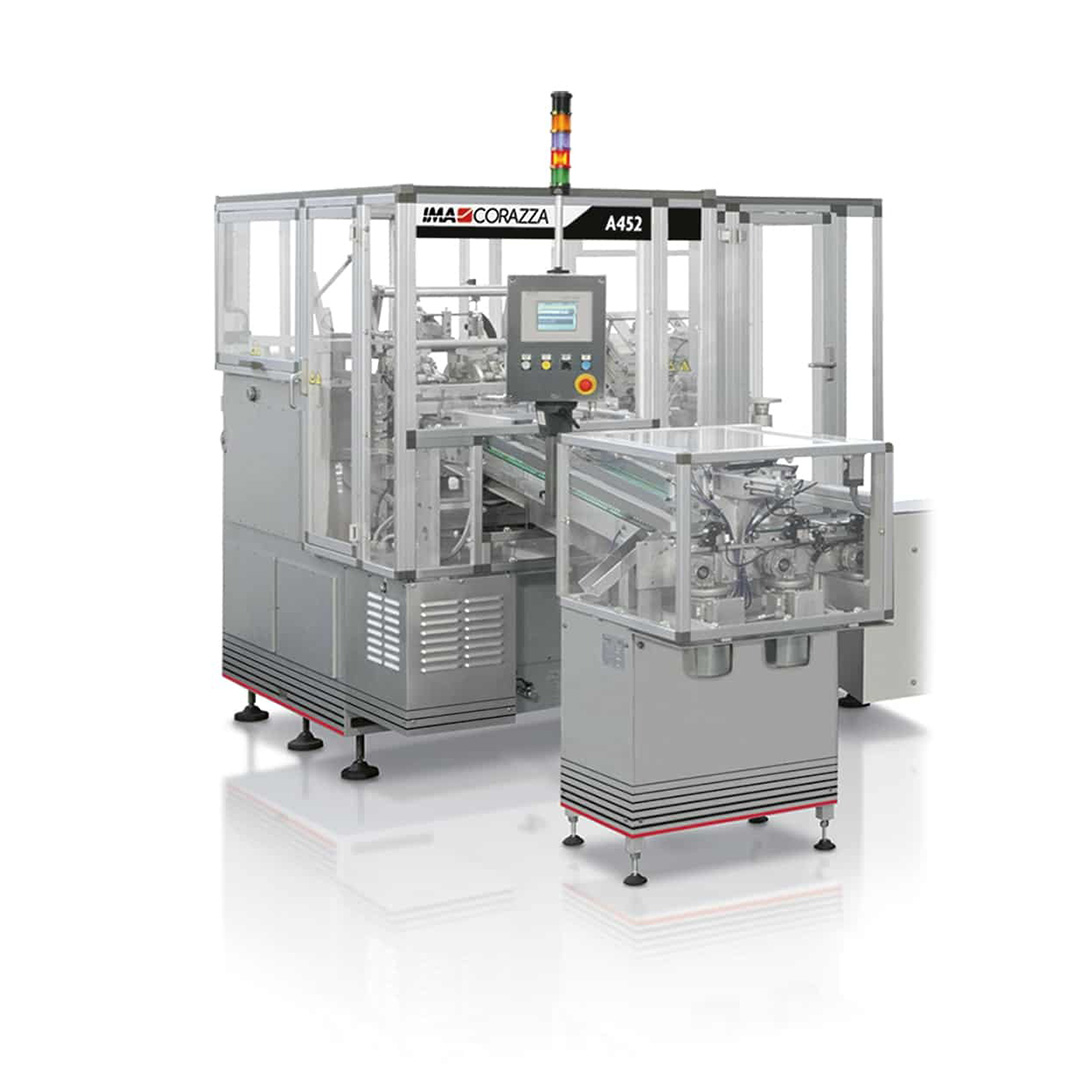 According to customer requirements, the A452F cartoner can be supplied with various types of infeed sections, depending on the product to be handled and on the requested pack configuration. The machine uses flat blank cartons which are formed around the product during the loading operation.