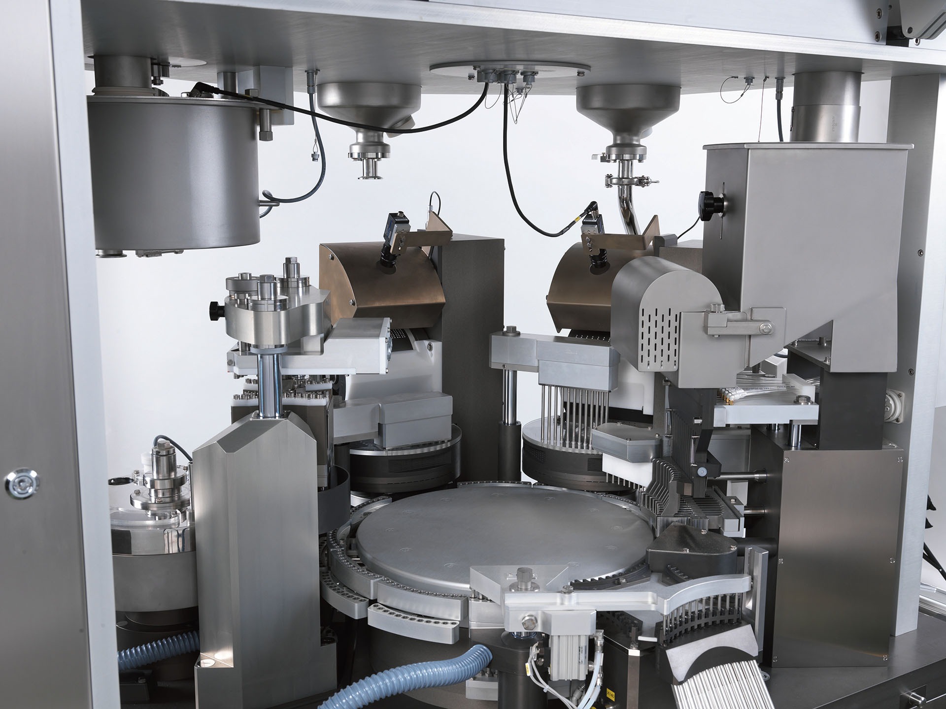 Regardless of production speed, it can be fitted with fully integrated 100% control of net weight for filled capsules, with individual identification of each channel separately.
