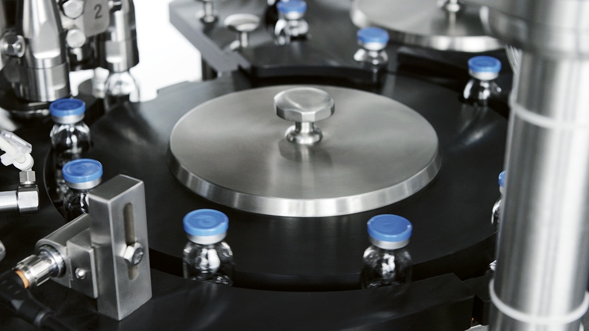 Versatile and reliable, ALUTECH applies and seals aluminium caps with or without flip-off onto ready-filled and rubber-stoppered cylindrical glass or plastic vials.