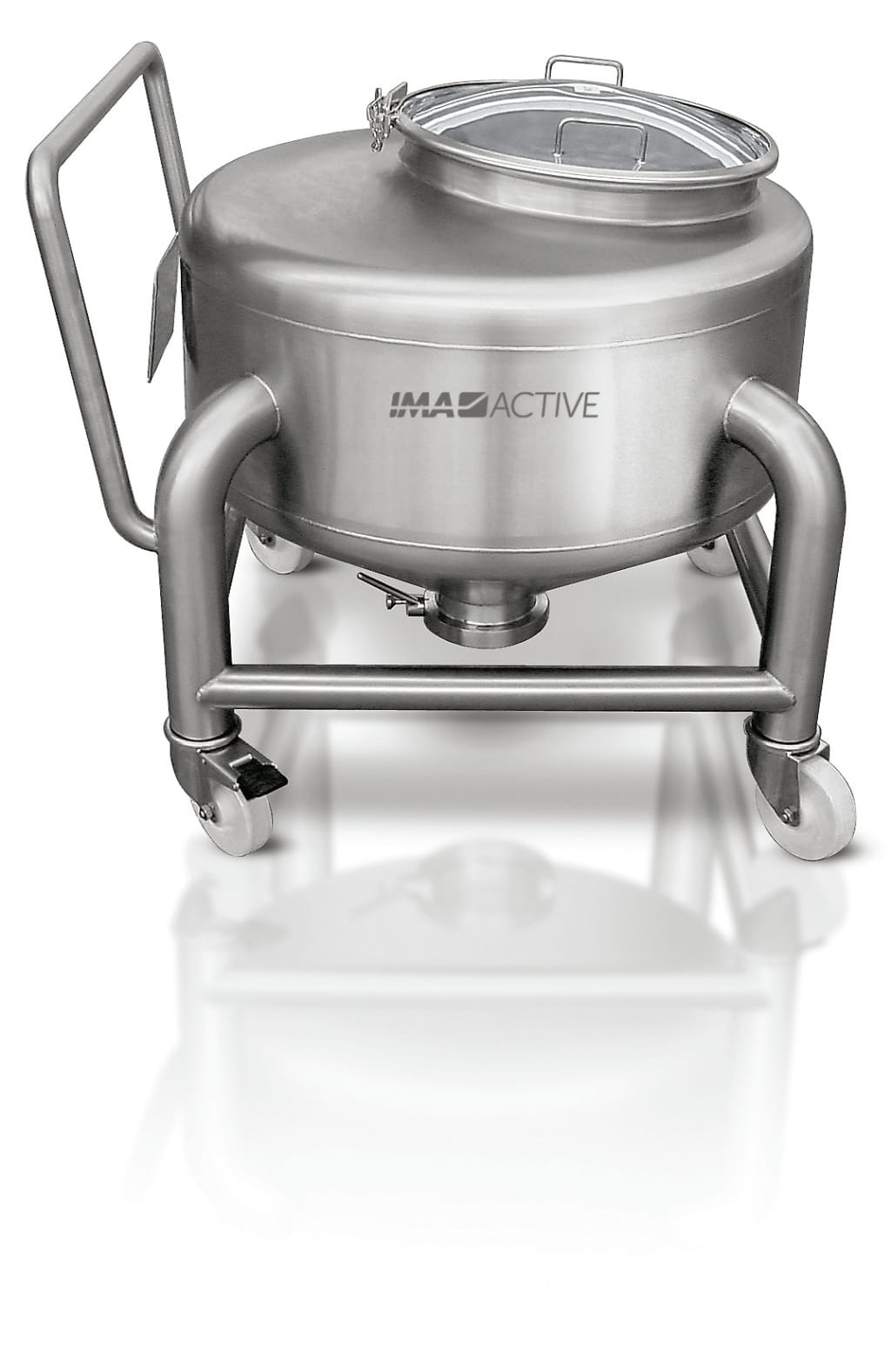 Sanitary butterfly valve, pivoting wheels, drum numbering and weight indication available as an option.