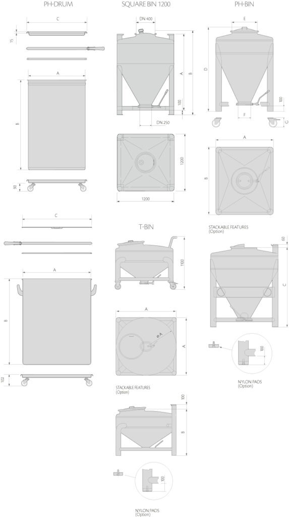 Bin is designed for handling and blending powders and granules. Fitted with “Trigon” or “Aries” holding systems, it can be interfaced with the loading and unloading devices of the Pharma Handling Systems.