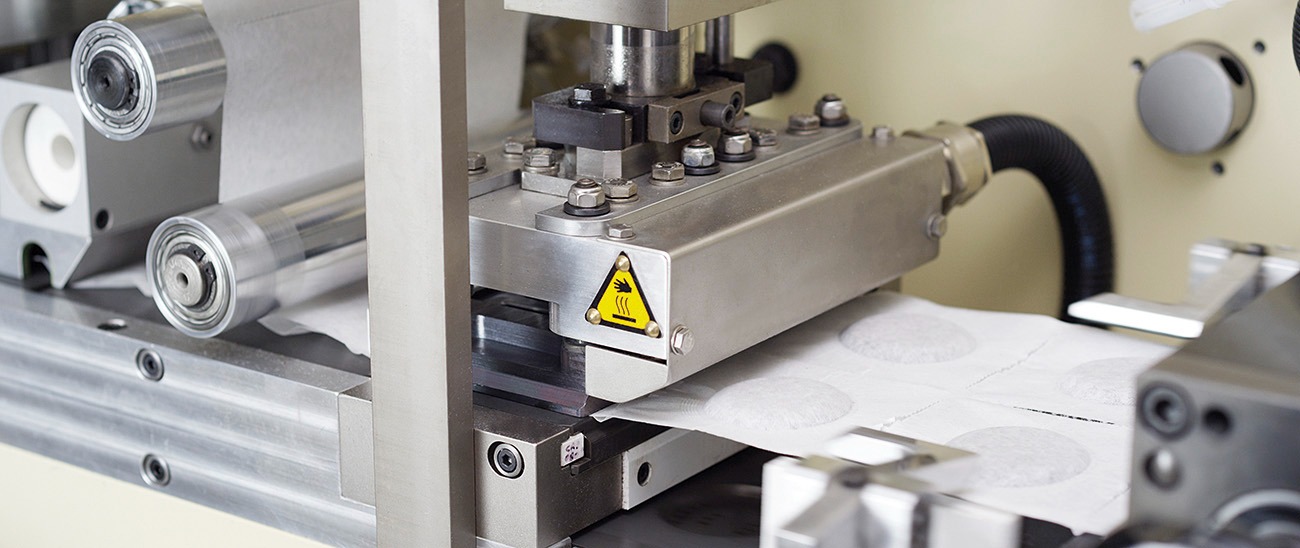 Prior to being inserted into a heat-sealed outer envelope, a controlled supply of nitrogen is introduced into a protective hood, where humidity and temperature are kept unvaried to guarantee optimum product quality.