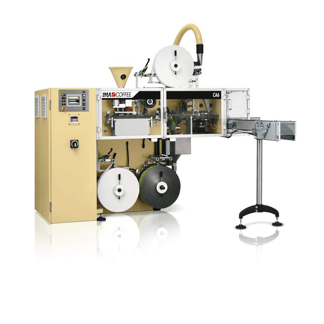 The CA6 packs hard coffee pods in a modified and conditioned atmosphere, heat-sealing them in a protective outer envelope and finally packing them into cartons at a production speed of 130 pods/minute.