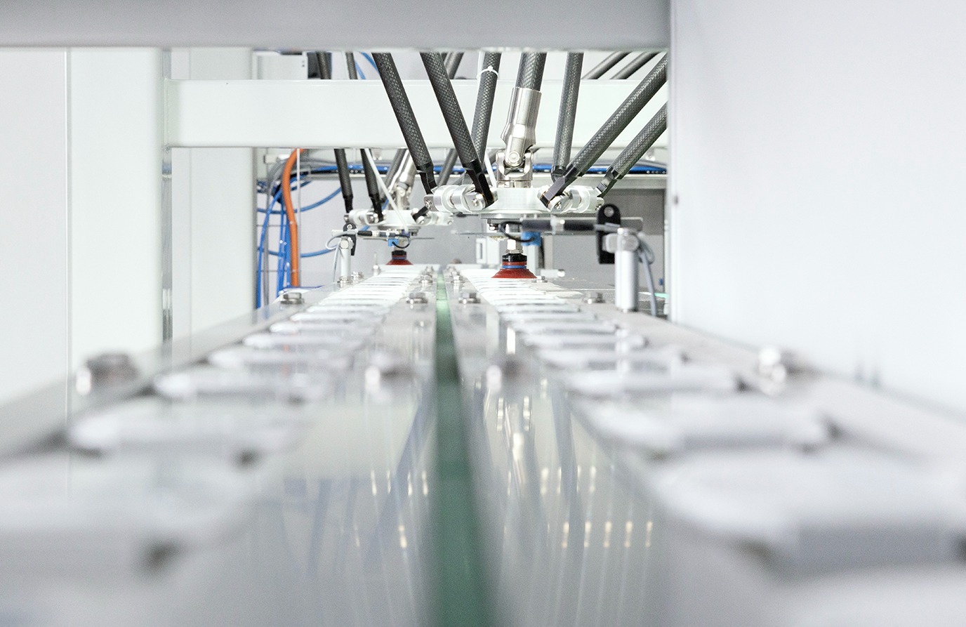 2 lid feeding lanes showcase maximum flexibility and versatility, adding functions that standard single lanes cannot reach. CM150 comes with 2 robots, completely independent, with single picking head for outmost placement precision (± 1.5 mm).
