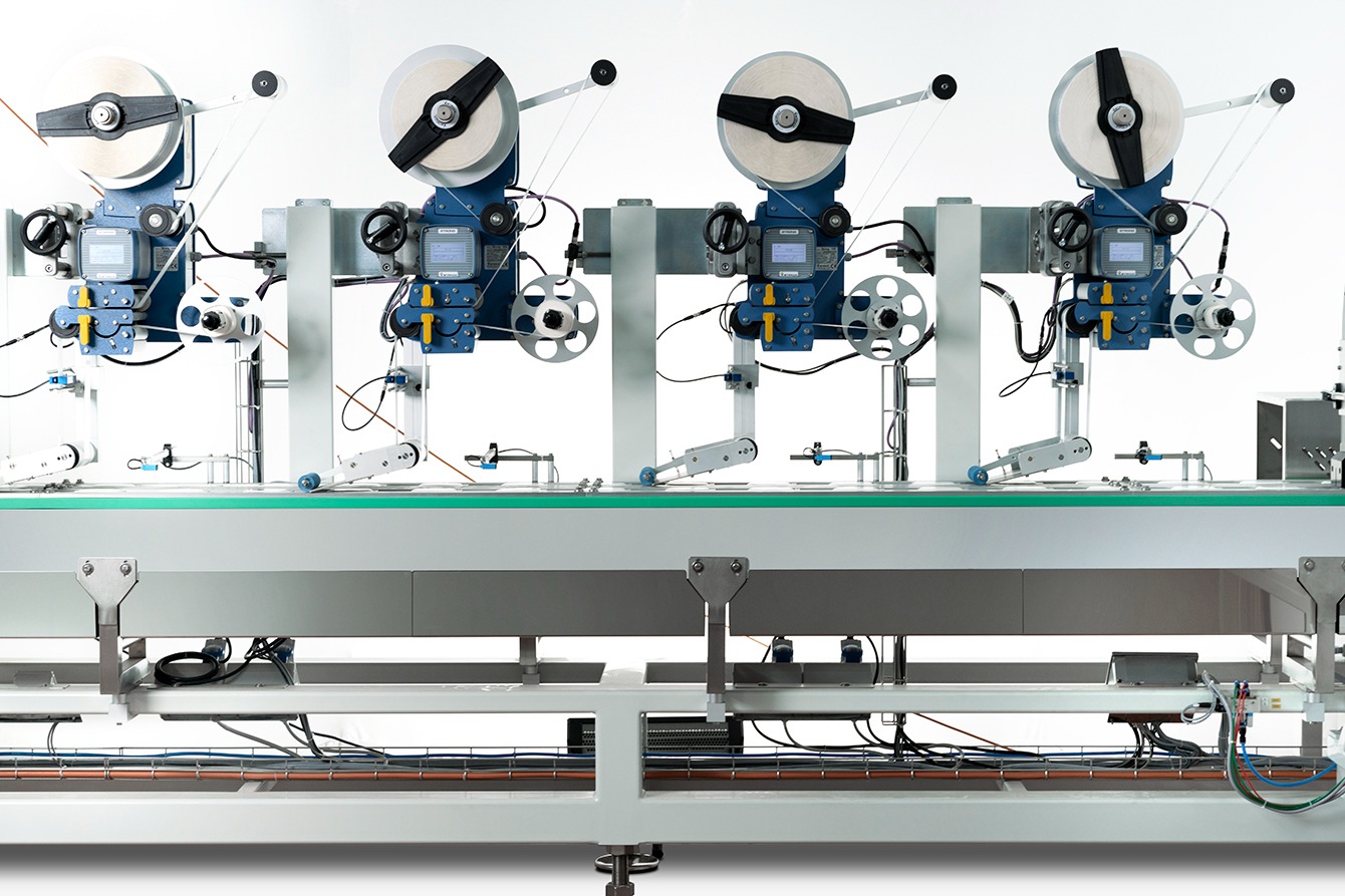 These precise wet wipes lid applicator machines operate on the individual packets of wipes as stand-alone solutions in the packaging machines, adapting the lid to the position of the package/film in order to obtain uniform placement of the lids on the packages.