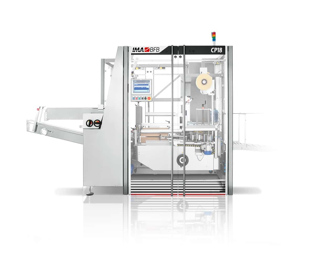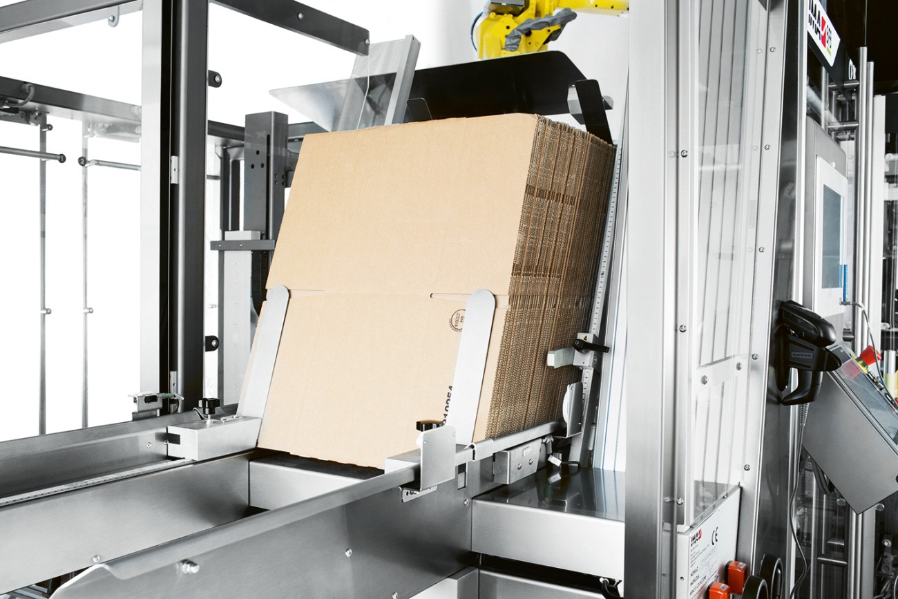 Ideal for packaging products such as pharmaceutical items, the machine is suitable for different production needs. Equipped with a horizontal case magazine for easy loading, the machine keeps the case erect during product insertion with the aid of suction cups fitted to the pick-up and forced opening arms. All the parts of the machine can be reached from the operator’s side without having to walk to the opposite side to reach the carton stacking unit. The machine can be fitted with the following optional groups and features: case overturning, product tracking and camera detection devices, integrated labellers and markers, and can also be fully servo-driven.