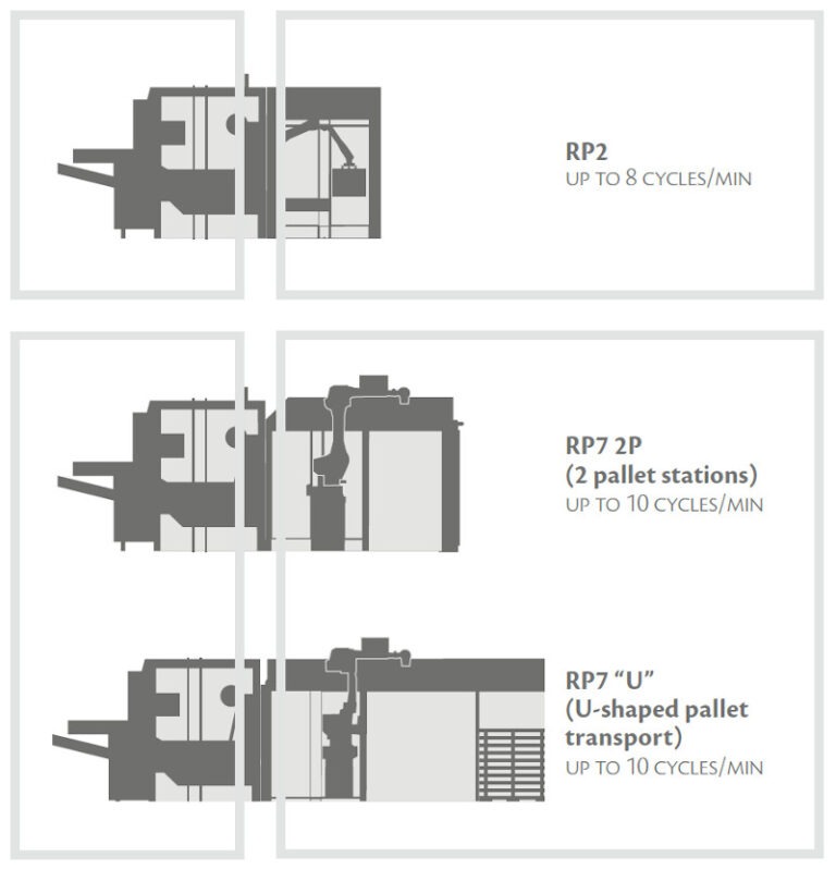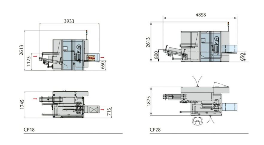CP18 / CP28 is available in different palletizer-integrated versions, according to the output speed required.