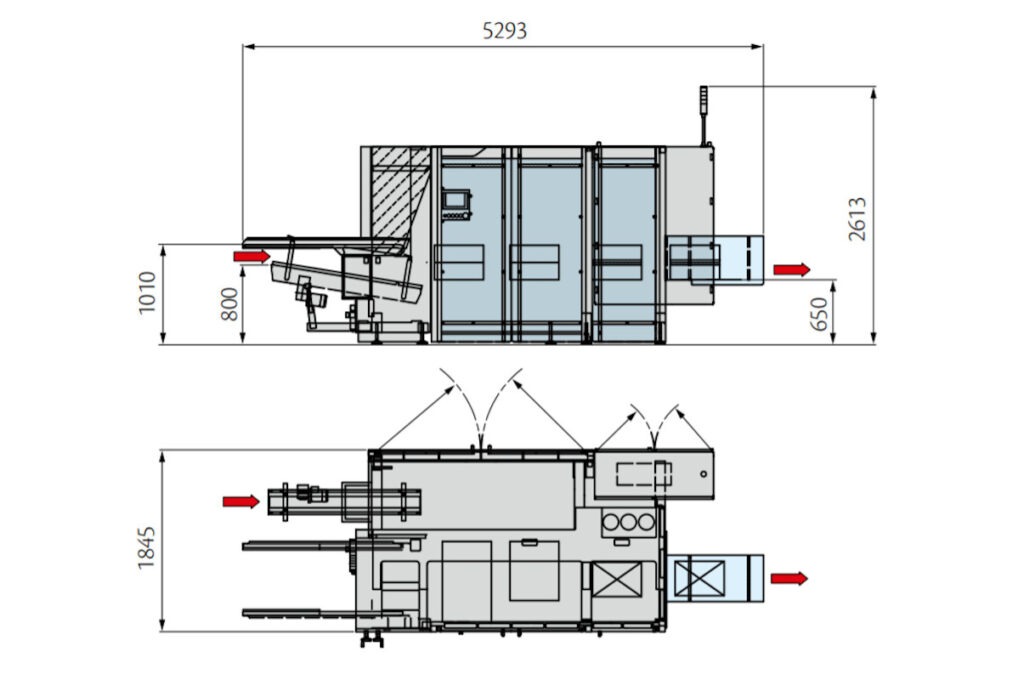 The case erecting mechanism now ensures extremely low positioning of the horizontal case magazine, thus increasing machine autonomy.