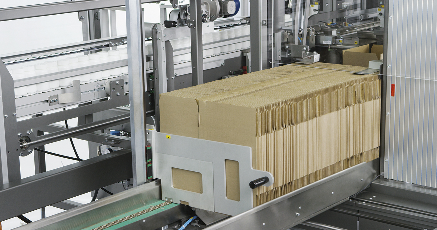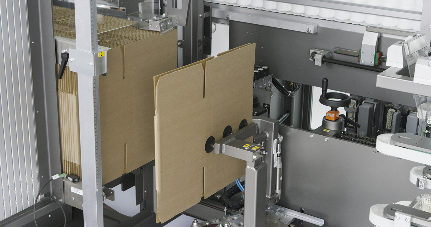 Up to 20 cases/minute can be processed, offering excellent productivity. Great emphasis has been given to machine accessibility, easy cleaning and ergonomic position of all its components. In order to be as operator-friendly as possible, the case erecting mechanism is designed to ensure a low positioning of the horizontal case magazine which also gives greater autonomy.