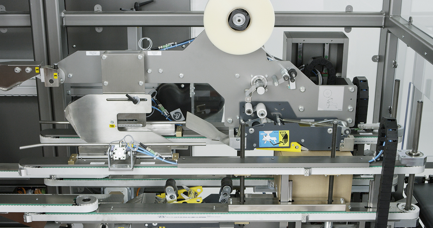 Case closing can be done either with hot melt glue or with adhesive tape. Reels positioned in an easy-to-access area for rapid replacement.