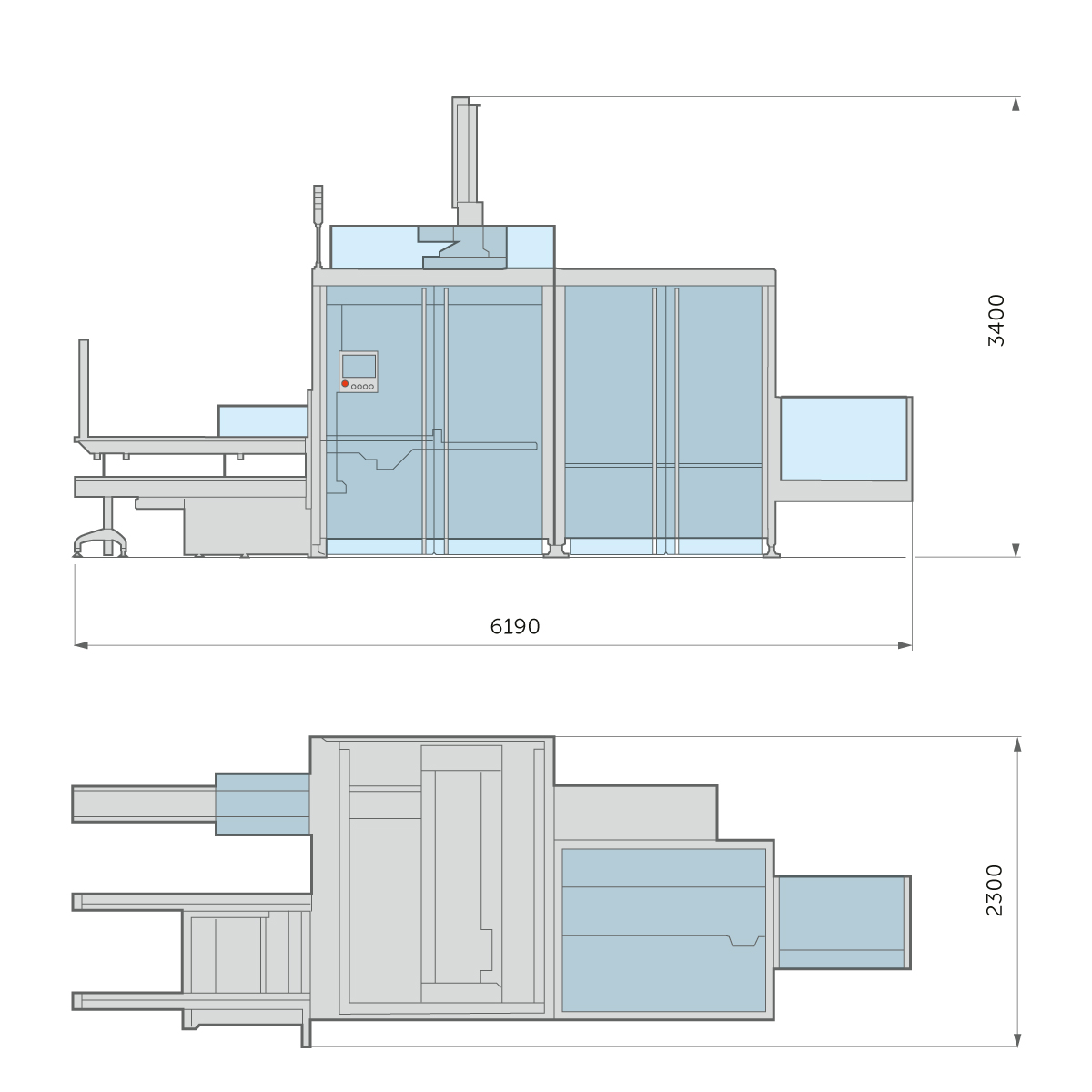Cantilever design for complete accessibility and easy cleaning. Ergonomic position of all components.