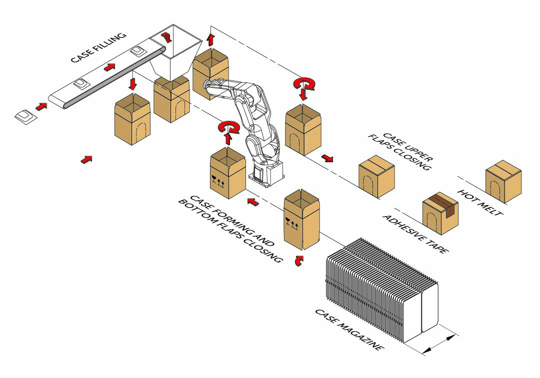 The CPVU is a high-speed vertical case packing machine, specifically designed for envelopes and flowpacks containing coffee pods and capsules. Thanks to its compact frame and linear flow – with cases entering and exiting from the same side – CPVU fits perfectly into tight production spaces.