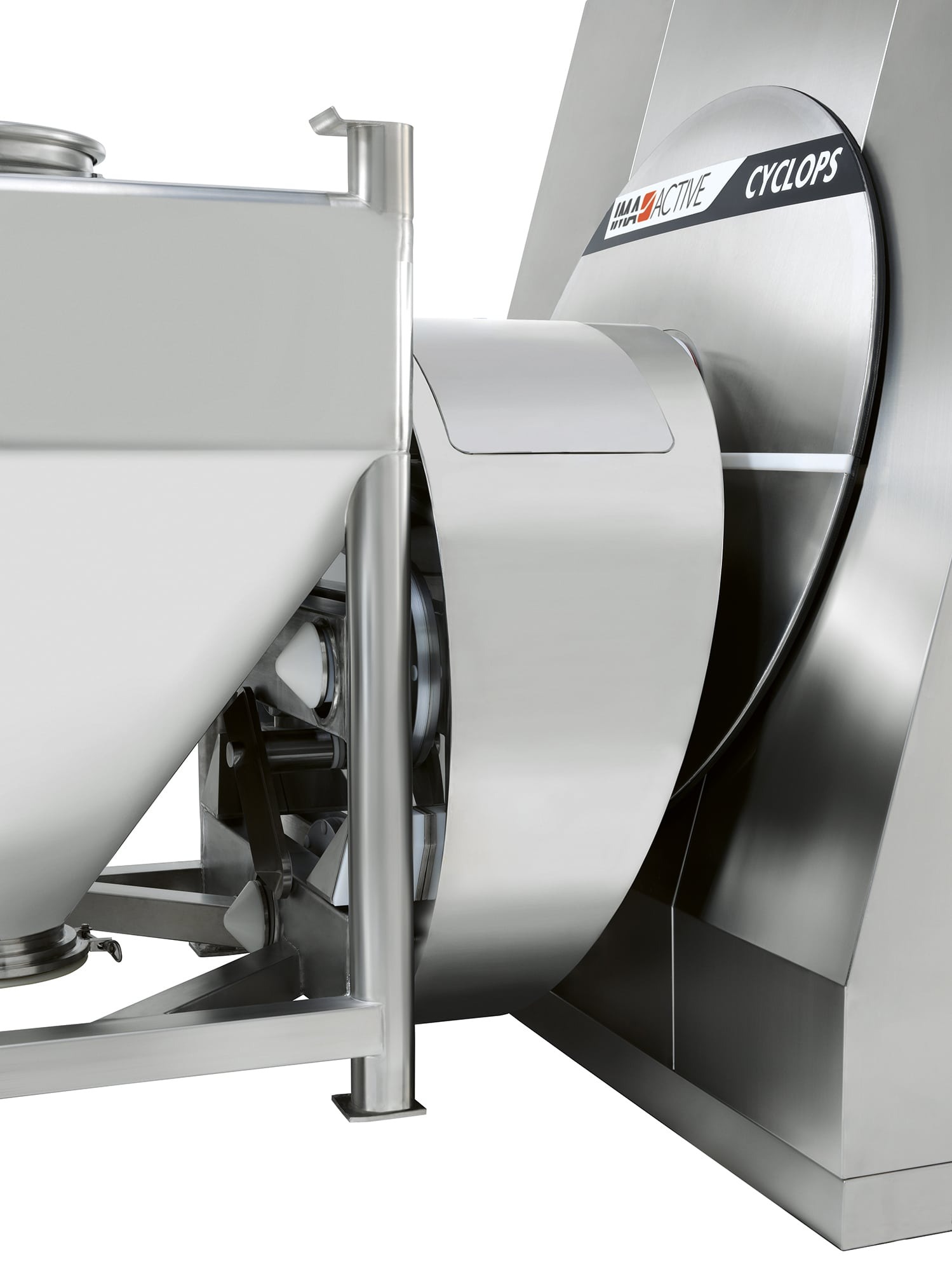 Providing the characteristic versatility and top performance of IMA Active’s bin tumblers, Cyclops ensures efficient mixing thanks to its 15° rotation axis while minimising the need for tumbler decontamination. The machine can be installed through-the-wall for top-level GMP configuration and space saving in the processing area.