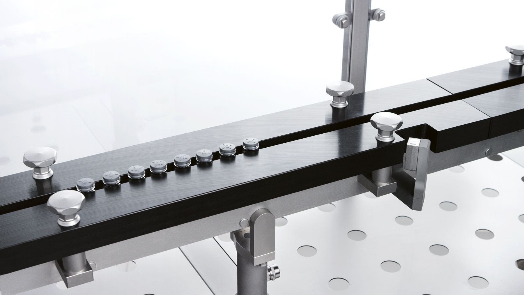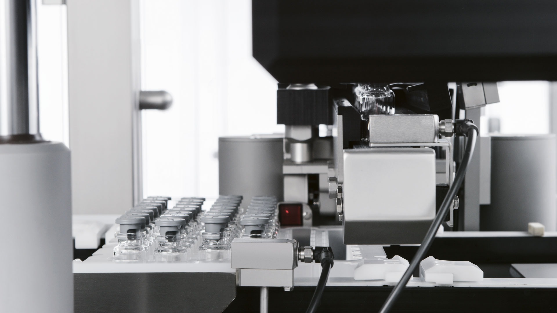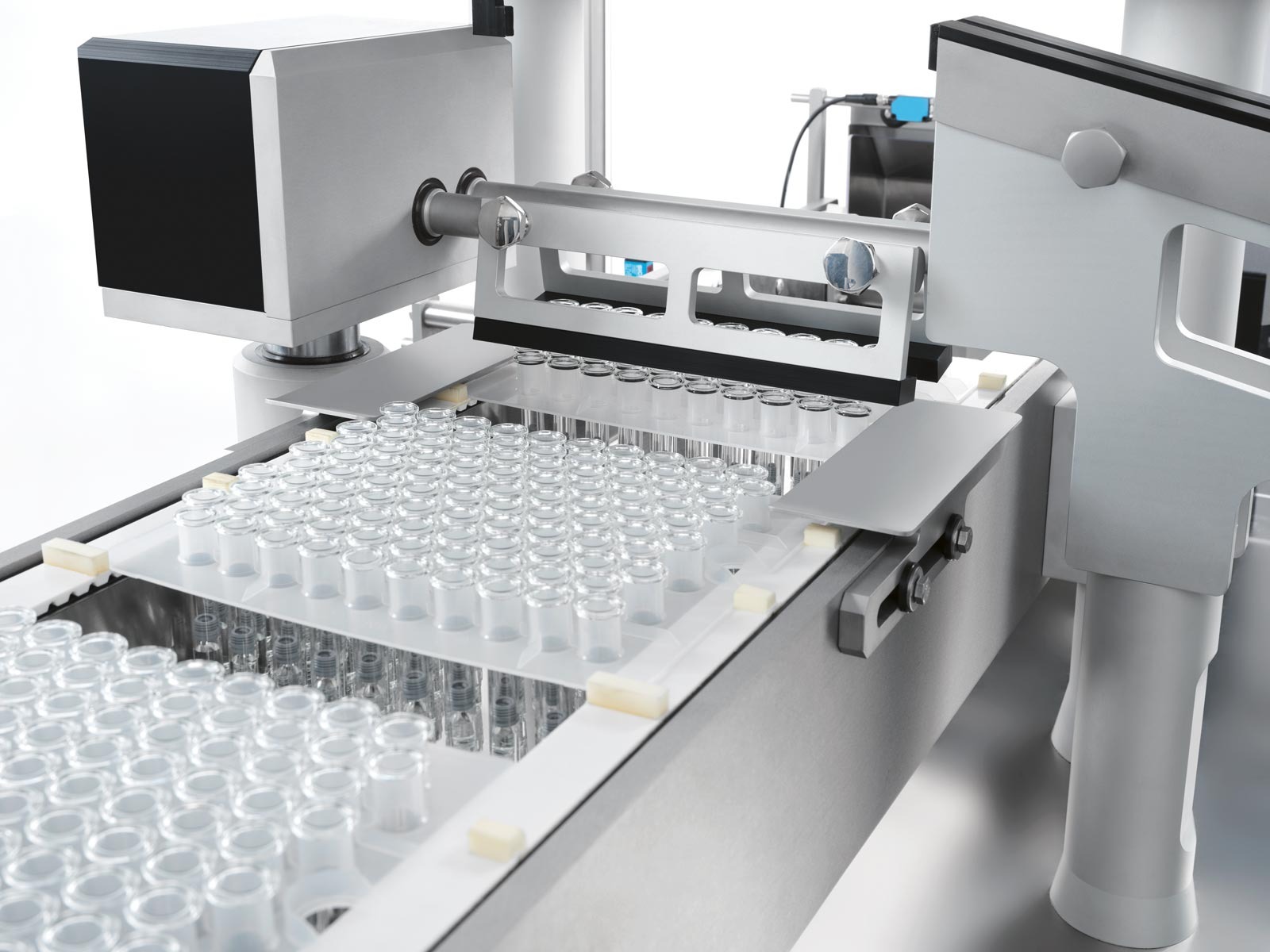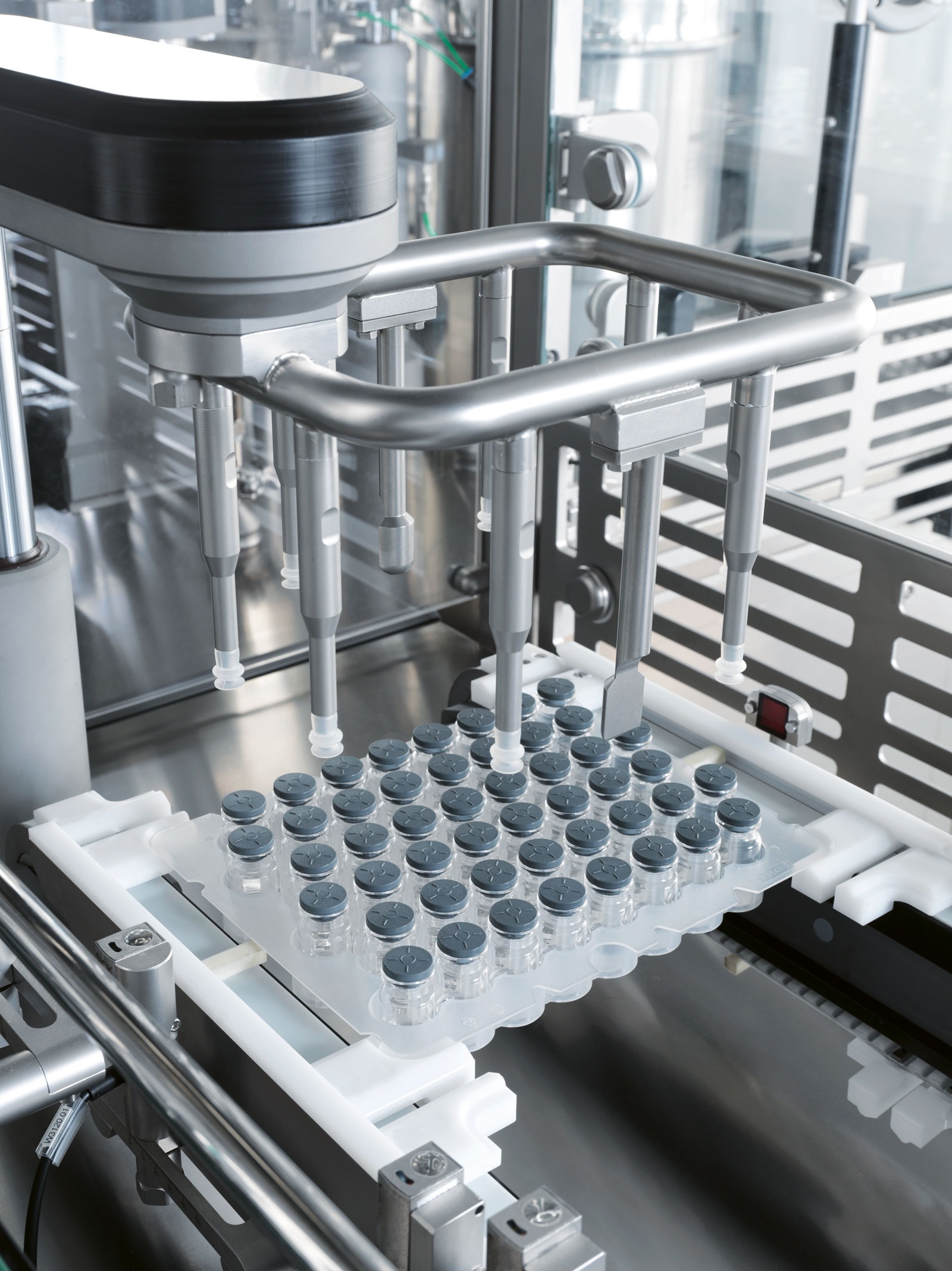 In the case of lyo products, the pre-stoppered RTU vials are denested and moved to an automatic downstream vial loading/unloading system and relevant freeze dryer. Capping operations will be performed subsequently on a separate capping station.